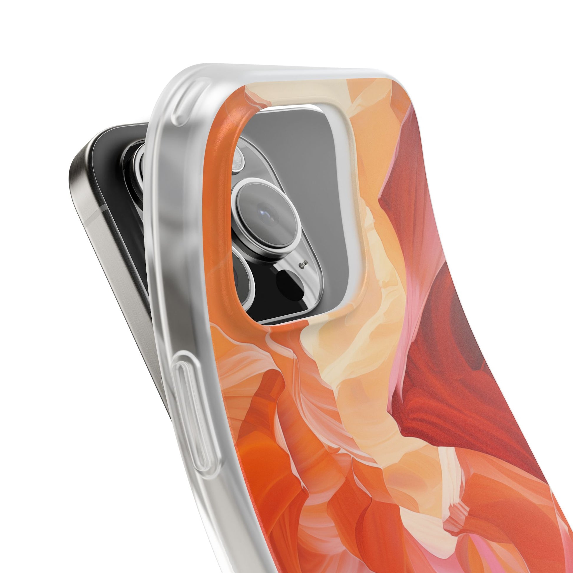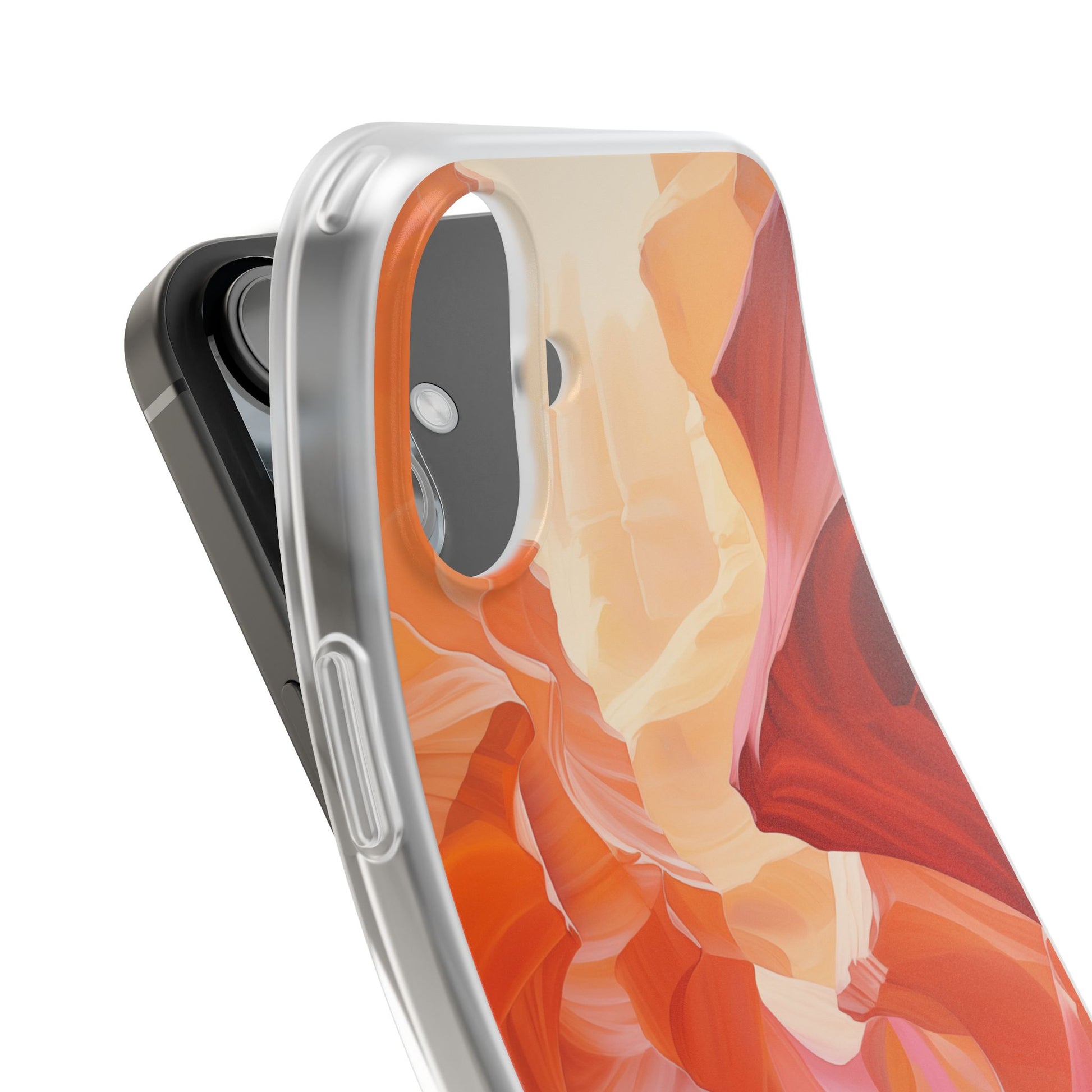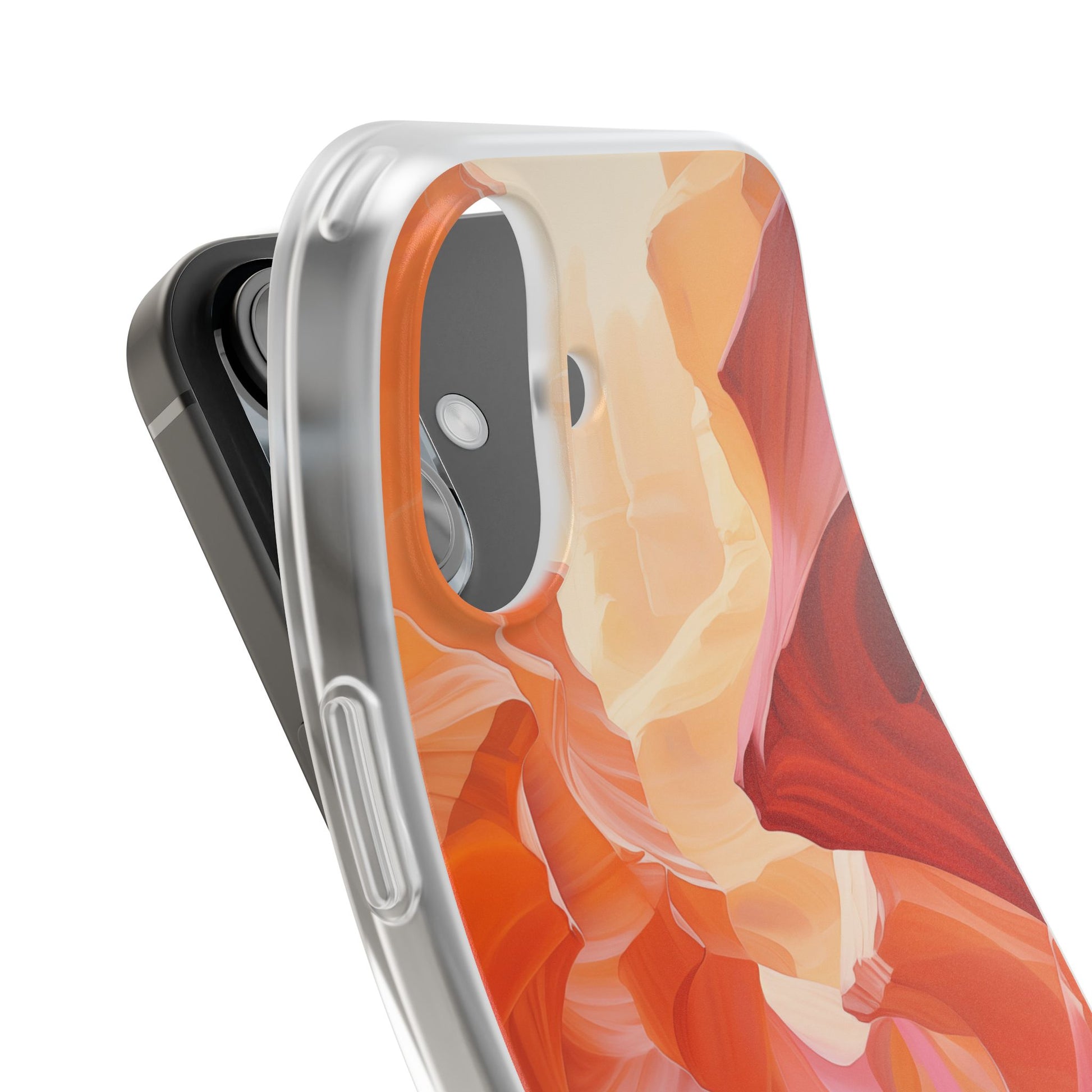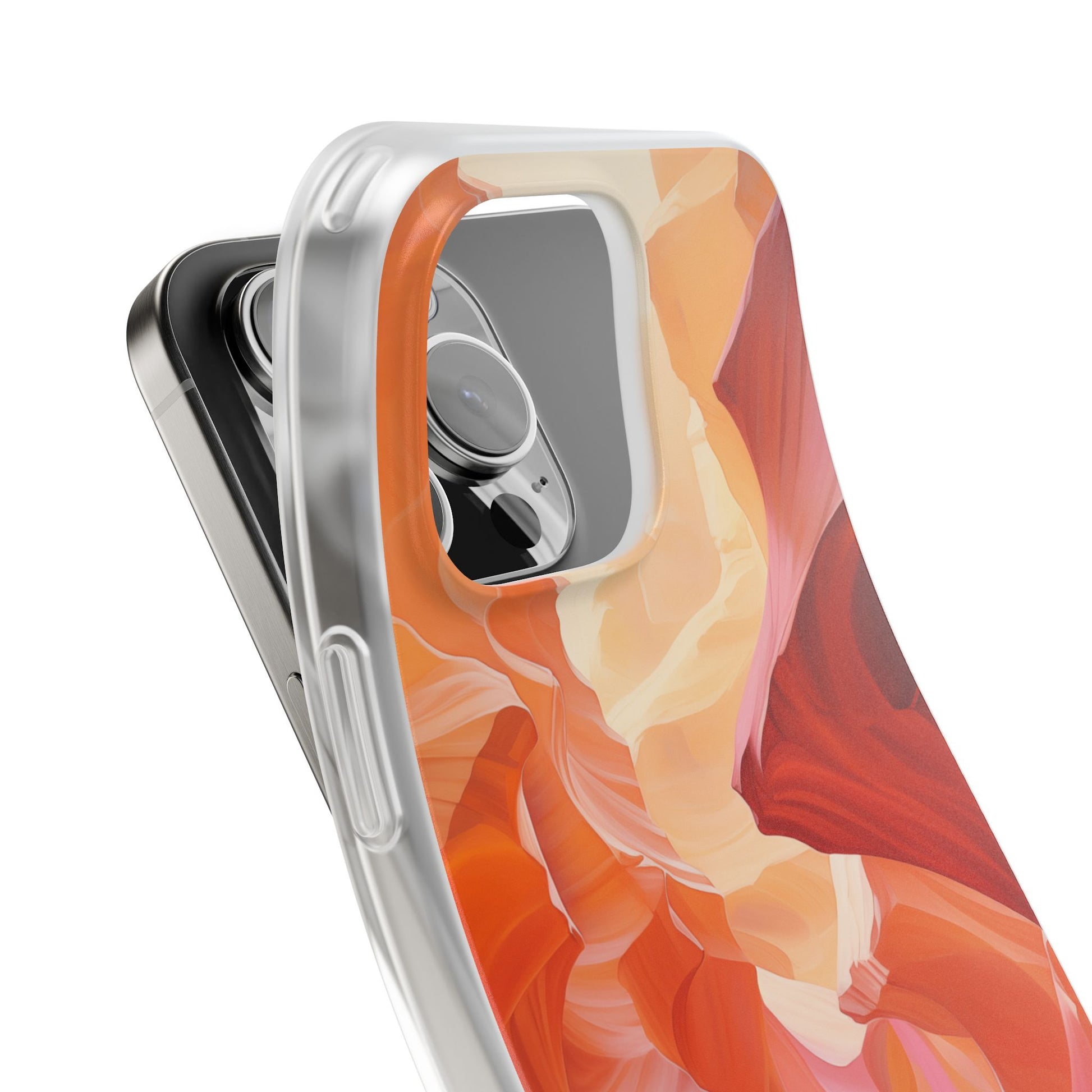 A slim, flexible phone case crafted to carry an artful scene in your hand. The semi-transparent matte finish lets soft light play through warm, canyon-inspired colors while a low-profile TPU shell hugs your device. It absorbs knocks and slips easily into pockets, yet keeps precise cutouts for charging and camera access. Lightweight and durable, it keeps your phone feeling sleek without hiding the personality of the design — great for days when you want functional protection that still reads like wearable art.