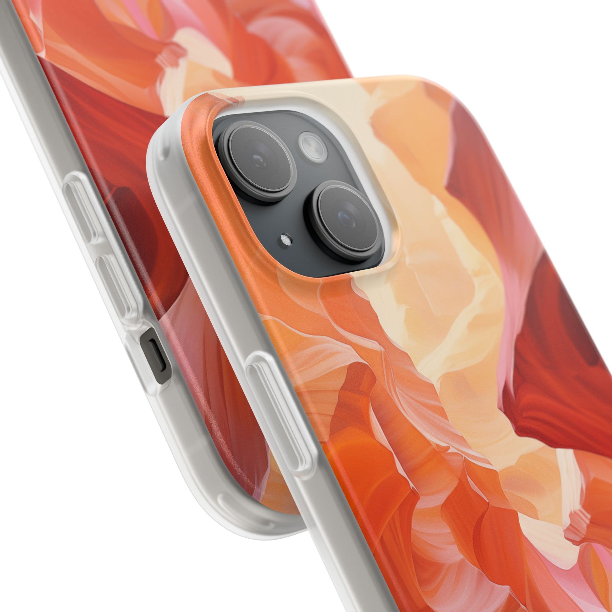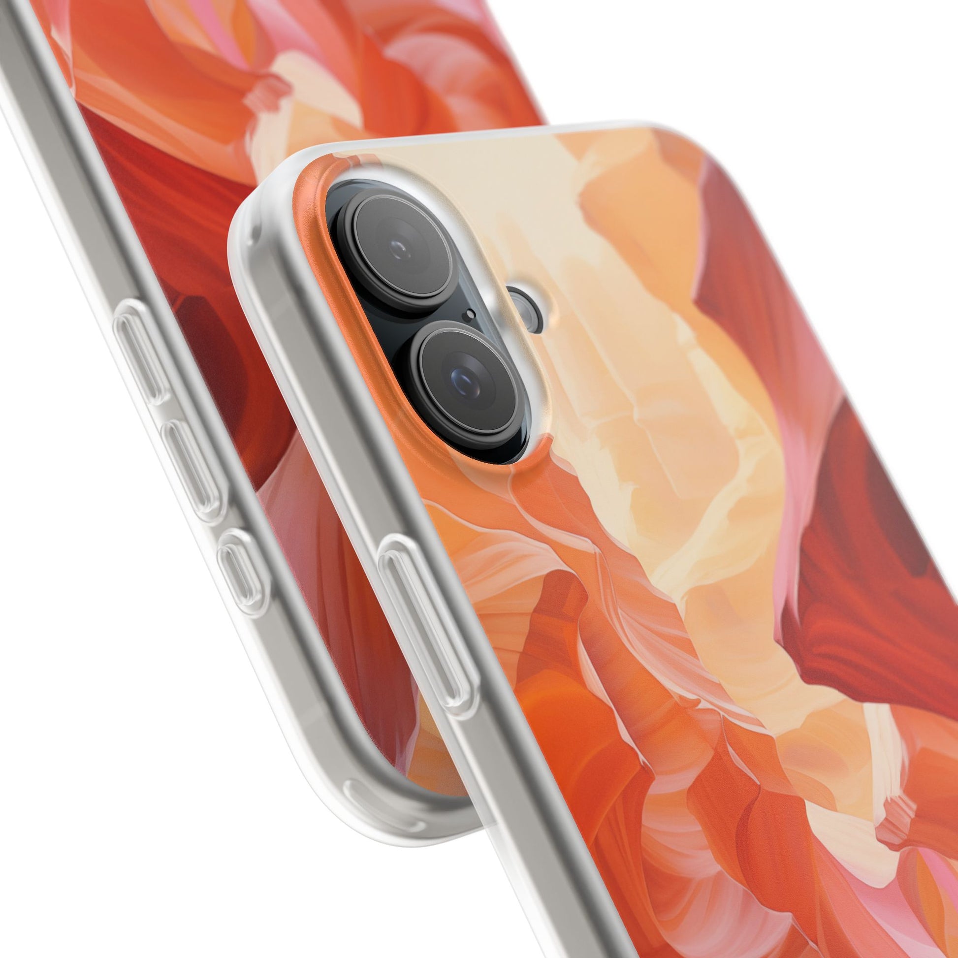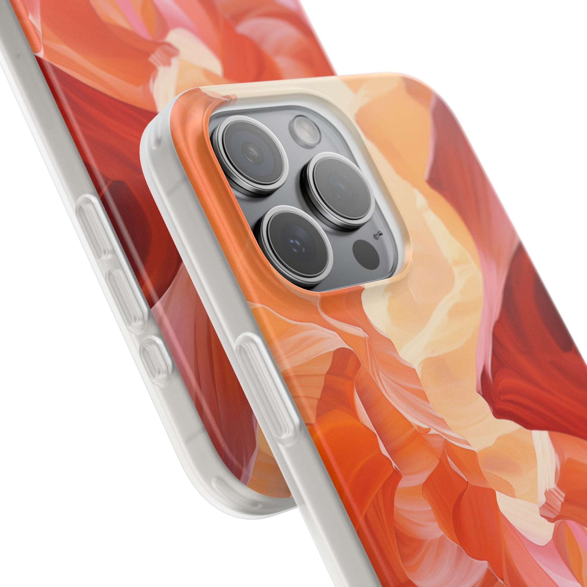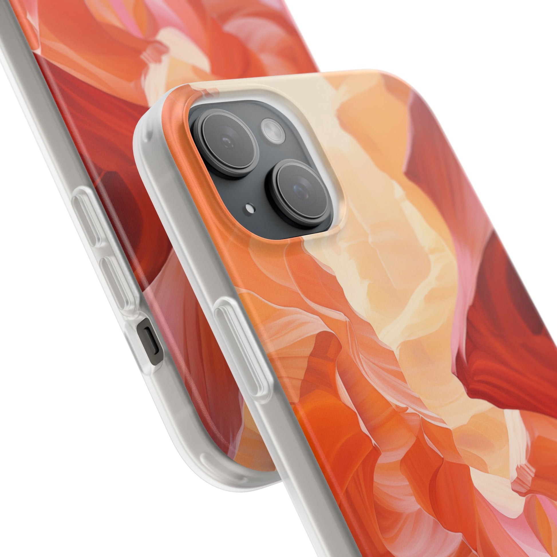 A slim, flexible phone case crafted to carry an artful scene in your hand. The semi-transparent matte finish lets soft light play through warm, canyon-inspired colors while a low-profile TPU shell hugs your device. It absorbs knocks and slips easily into pockets, yet keeps precise cutouts for charging and camera access. Lightweight and durable, it keeps your phone feeling sleek without hiding the personality of the design — great for days when you want functional protection that still reads like wearable art.