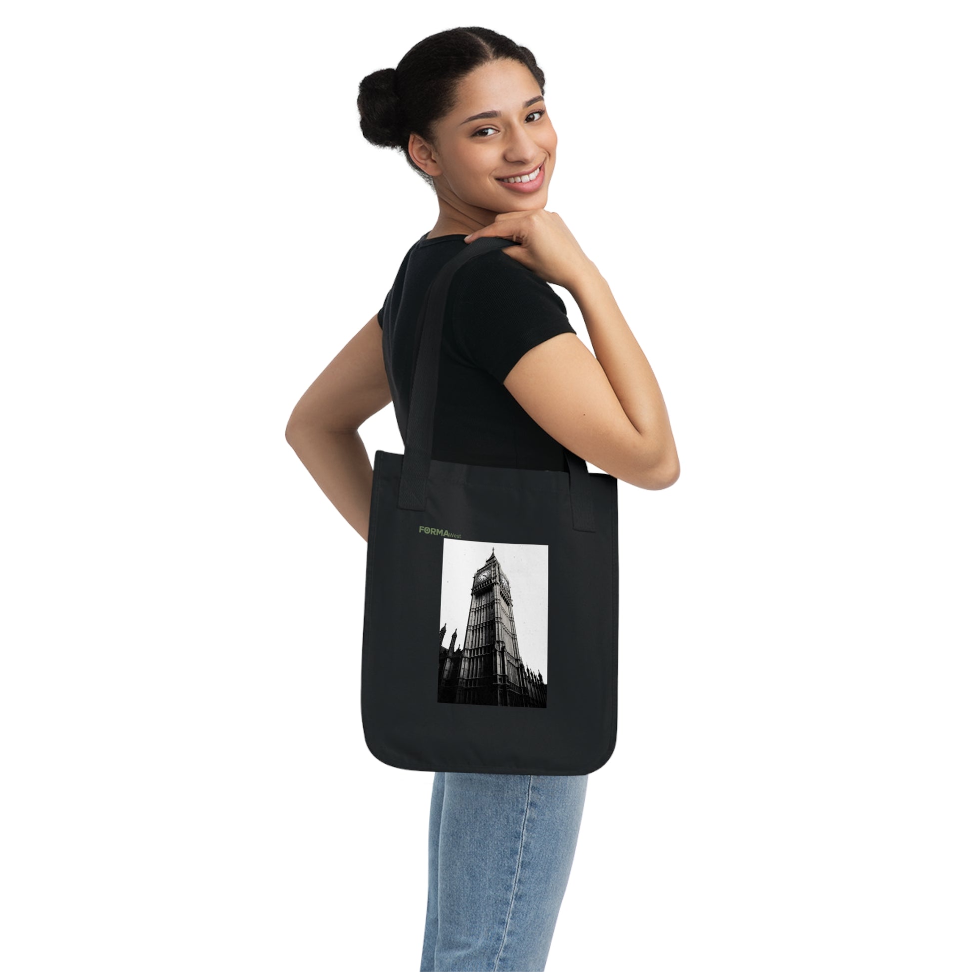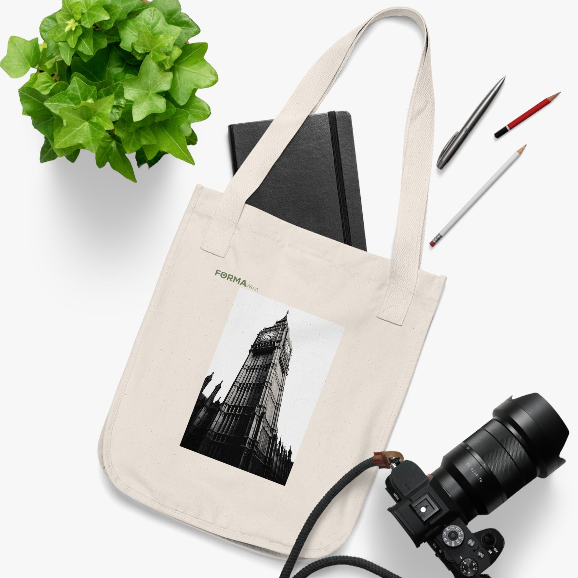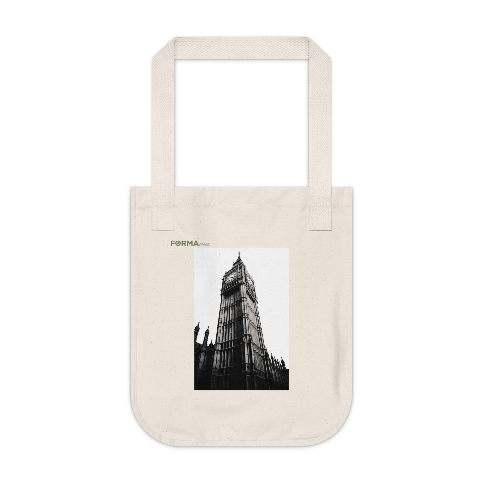 This organic canvas tote brings quiet, urban romance to everyday errands. A moody black-and-white photograph of Big Ben sits off-center on a natural, flecked cotton canvas — the kind of image that invites a second look. The medium-heavy organic cotton holds its shape while carrying books, market finds, or a laptop. Reinforced cotton web handles feel comfortable over the shoulder, and the spacious single compartment keeps your essentials within easy reach. Small details — torn-away label, Econscious tag, and visible cotton flecks — underline the bag’s tactile, low-impact character. It settles naturally into the rhythms of someone who moves through city streets with intention: commuting, gallery hopping, or wandering to a café for a long afternoon of reading.