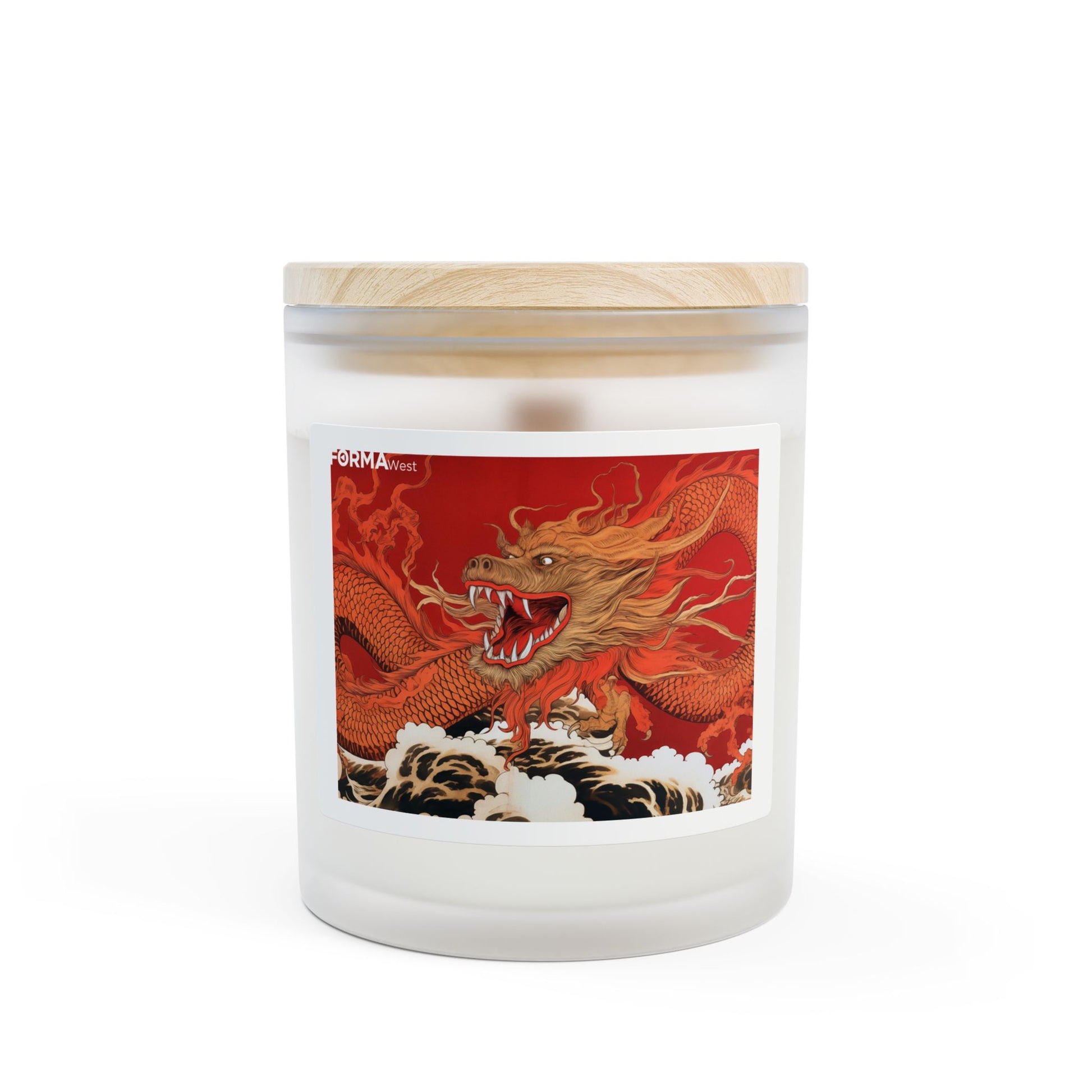 Warm light, smoky drift, and a bold whisper of heritage — this frosted glass candle brings ritual and story into quiet corners. Poured from a coconut-soy blend that burns clean and long, it rests in a matte, frosted vessel topped with a raw maple lid. A handcrafted wooden wick snaps softly as it burns, offering a gentle, crackling cadence that turns ordinary evenings into something attentive and slow. The vivid dragon artwork wraps the jar like a talisman, adding a burst of color and myth to a shelf, altar, or bedside table. Choose from nine thoughtfully curated scents to match the mood you want to summon. This candle is made in the USA and designed to be both beautiful and responsibly made—an object that invites lighting, listening, and remembering.