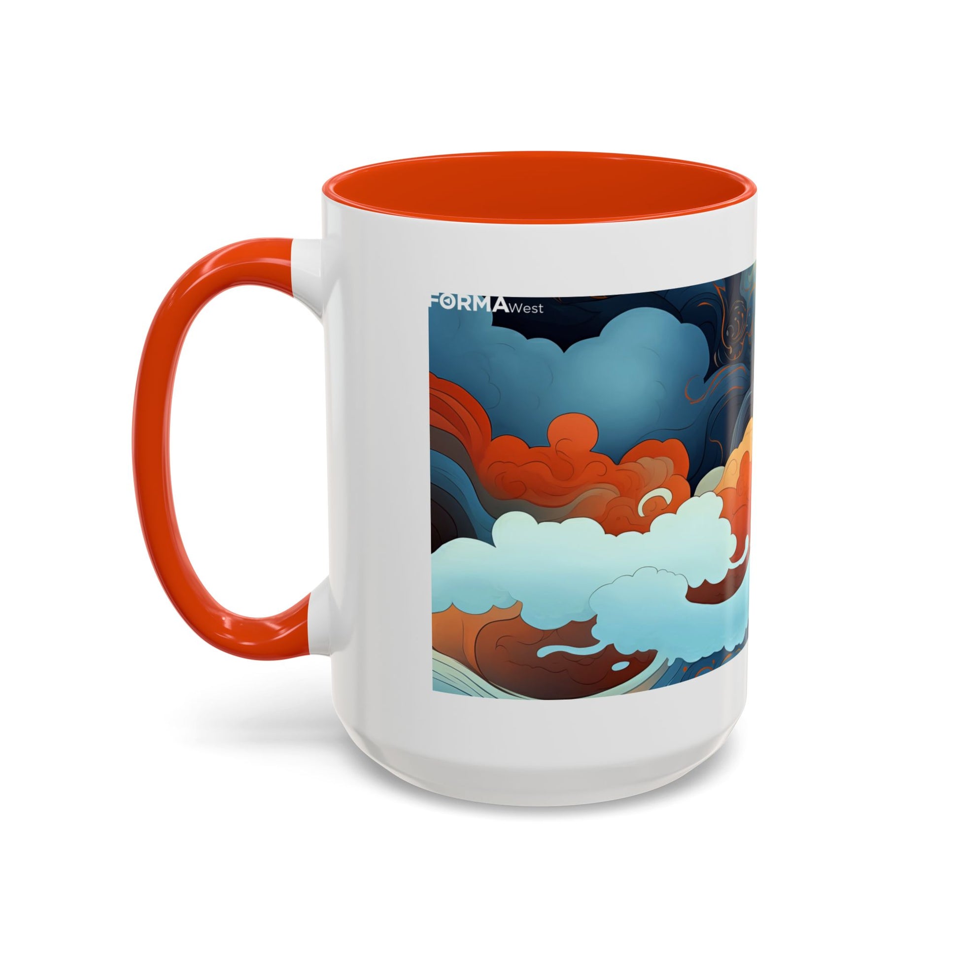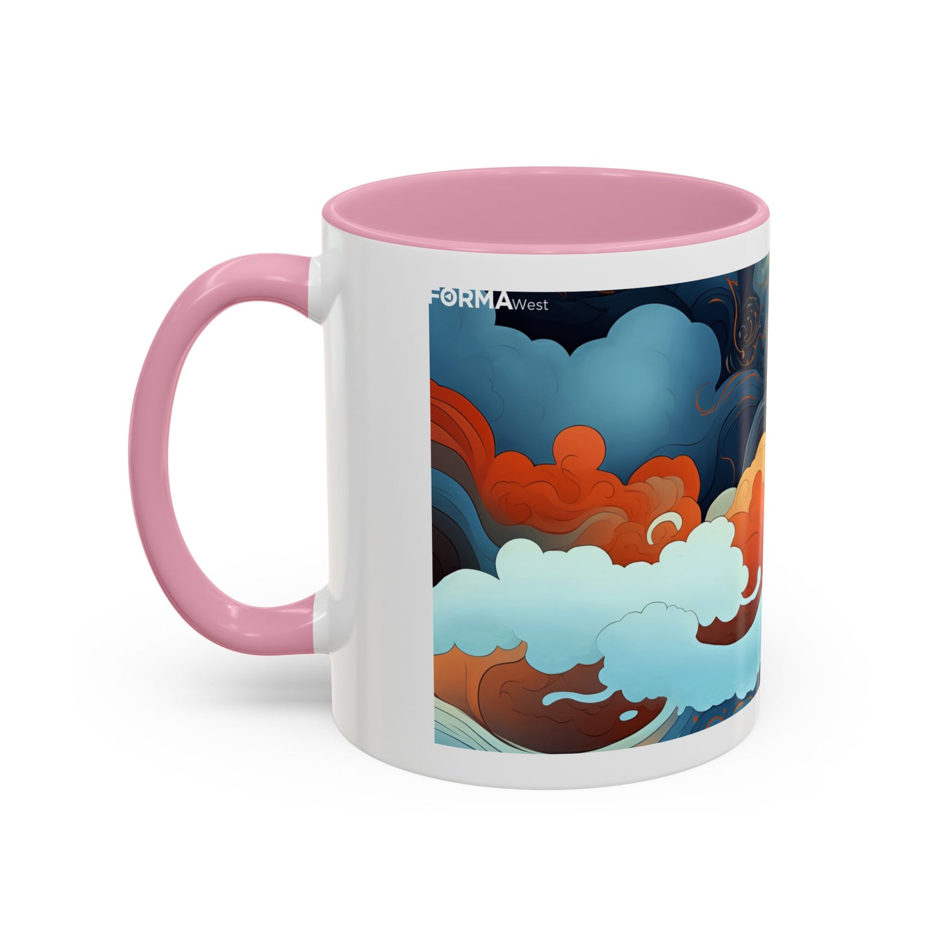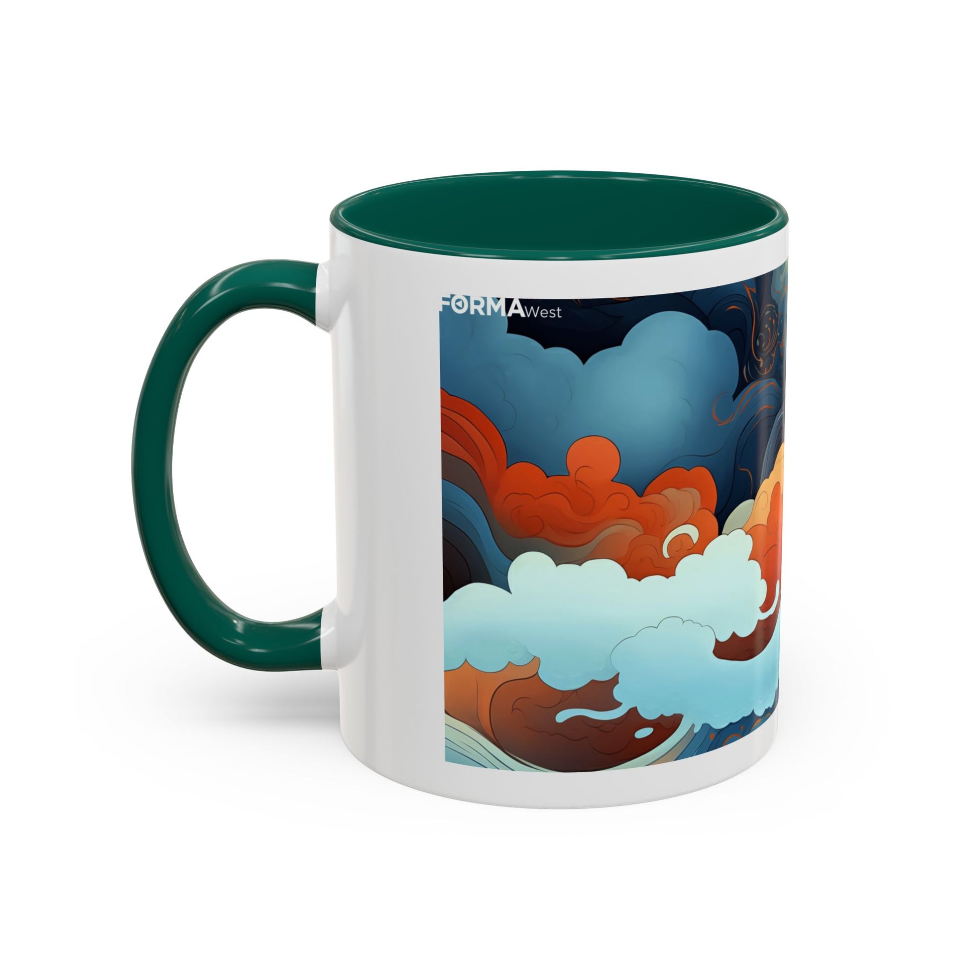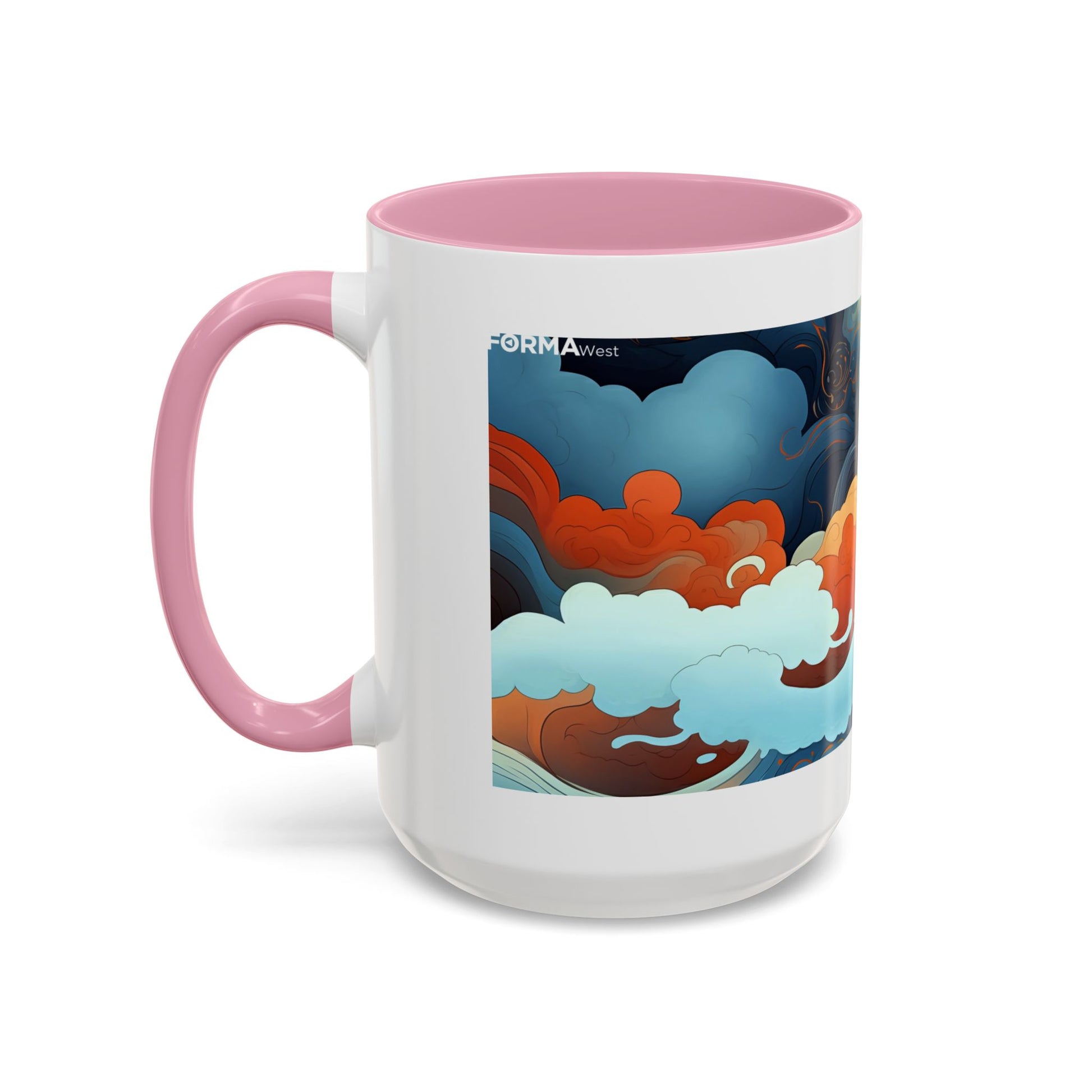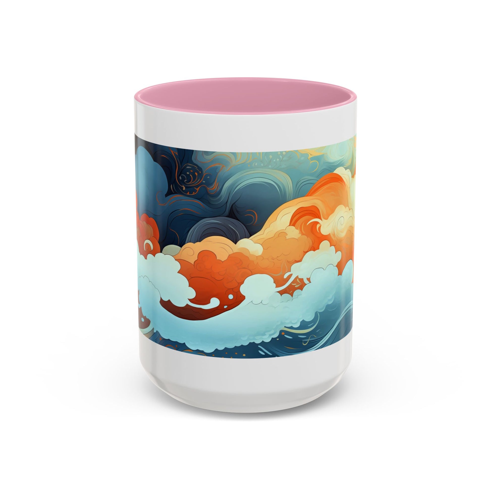 Sip color and calm in equal measure. This glossy ceramic mug wraps a sweeping, painterly seascape around its curve — warm coral clouds rolling into teal waves with layered brush-like strokes. The interior and C-handle come in a contrasting accent color, so each morning feels curated and a little brighter. It’s sturdy enough for daily use, safe in the microwave and dishwasher, and the ORCA coating keeps the artwork vivid through many washes. Use it at your desk, on the porch, or as a cozy companion during slow afternoons with a book.