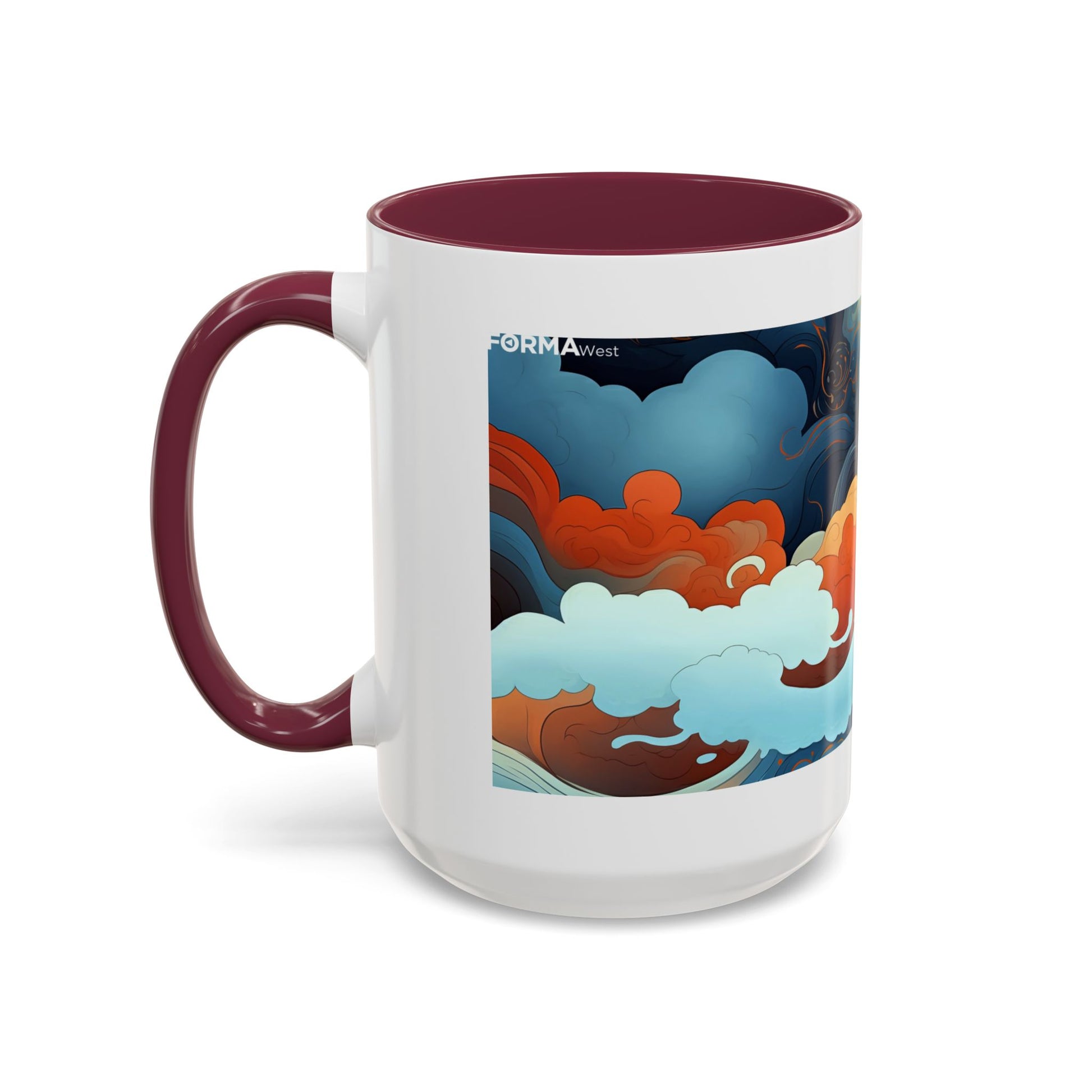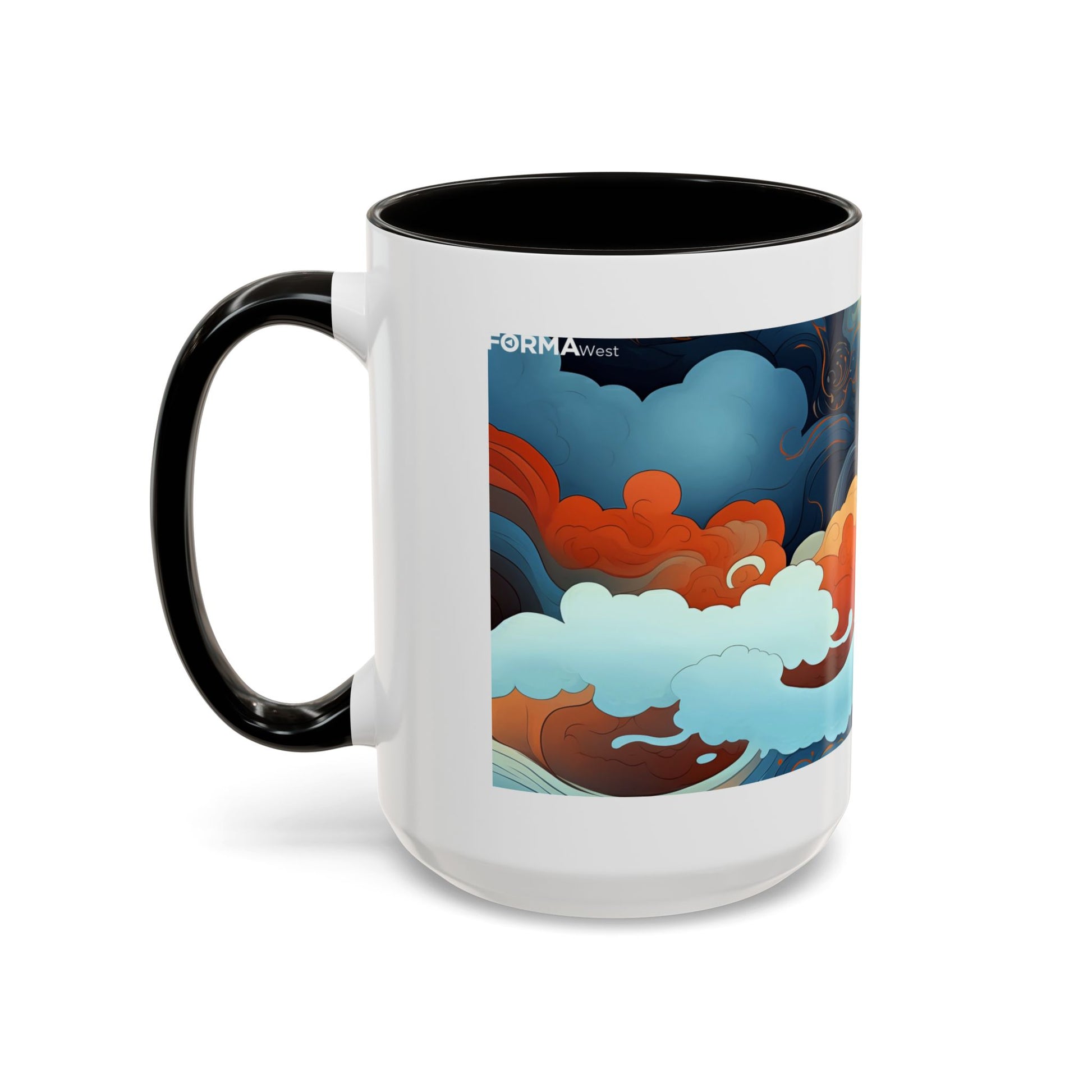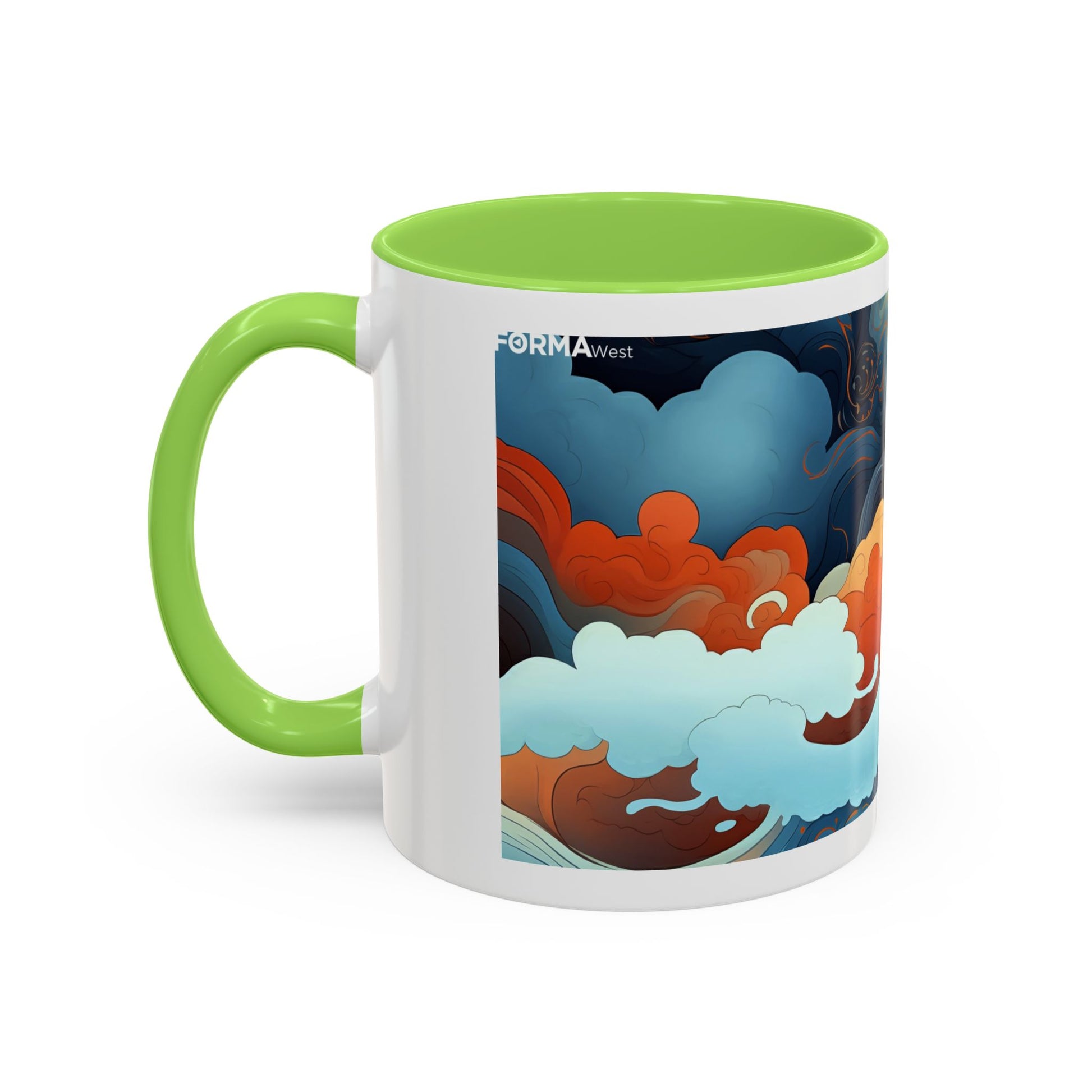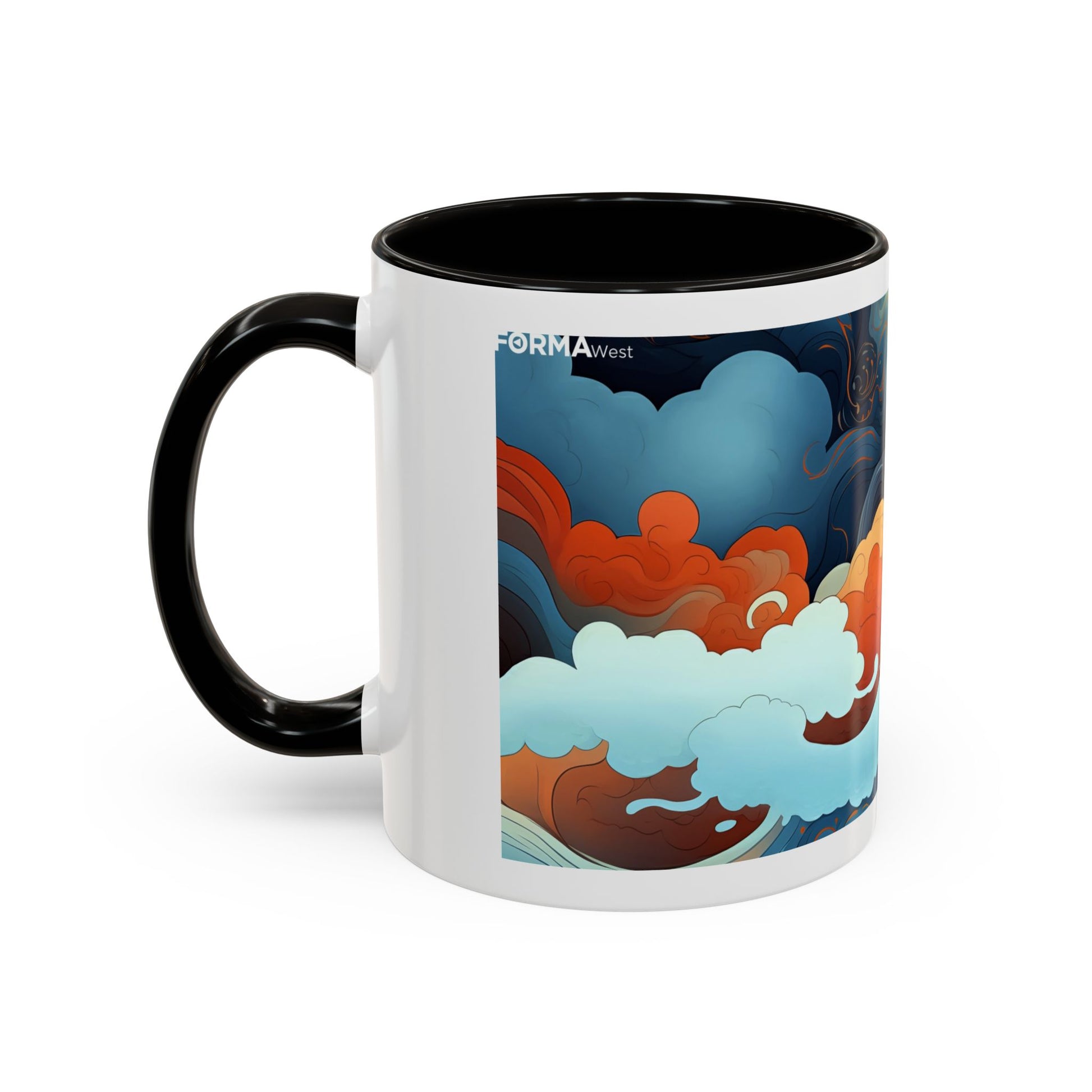 Sip color and calm in equal measure. This glossy ceramic mug wraps a sweeping, painterly seascape around its curve — warm coral clouds rolling into teal waves with layered brush-like strokes. The interior and C-handle come in a contrasting accent color, so each morning feels curated and a little brighter. It’s sturdy enough for daily use, safe in the microwave and dishwasher, and the ORCA coating keeps the artwork vivid through many washes. Use it at your desk, on the porch, or as a cozy companion during slow afternoons with a book.