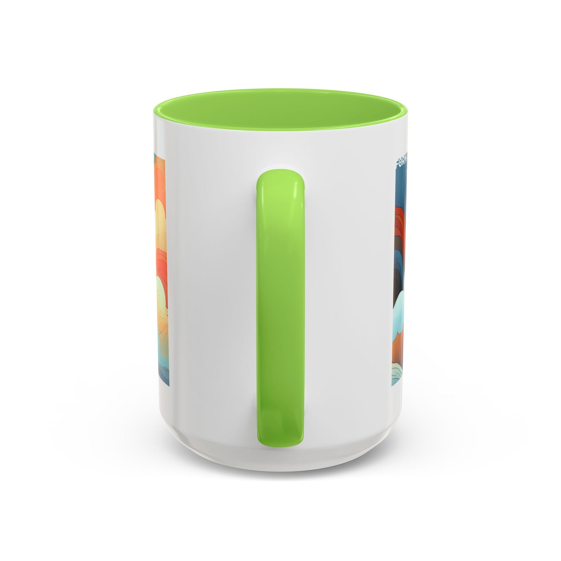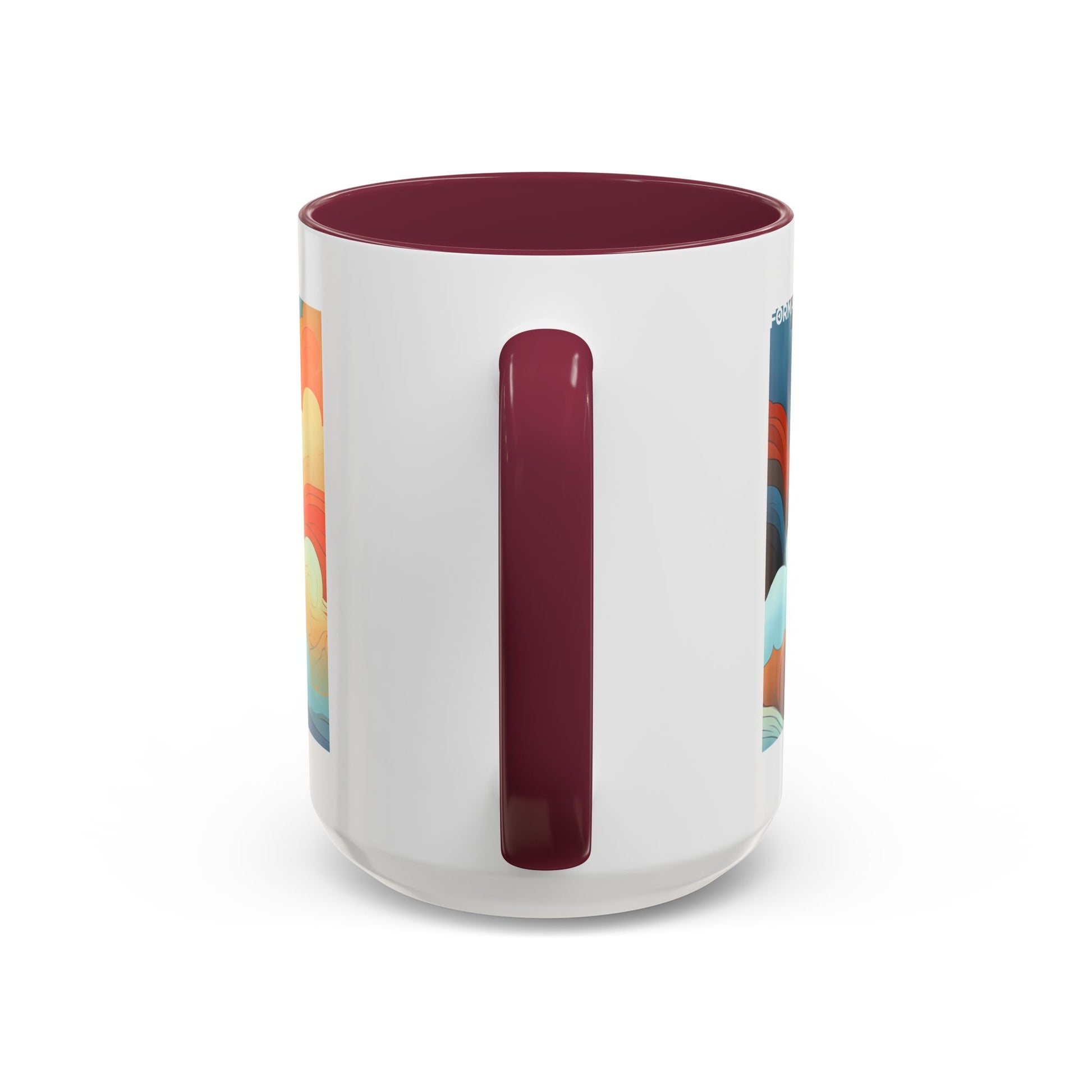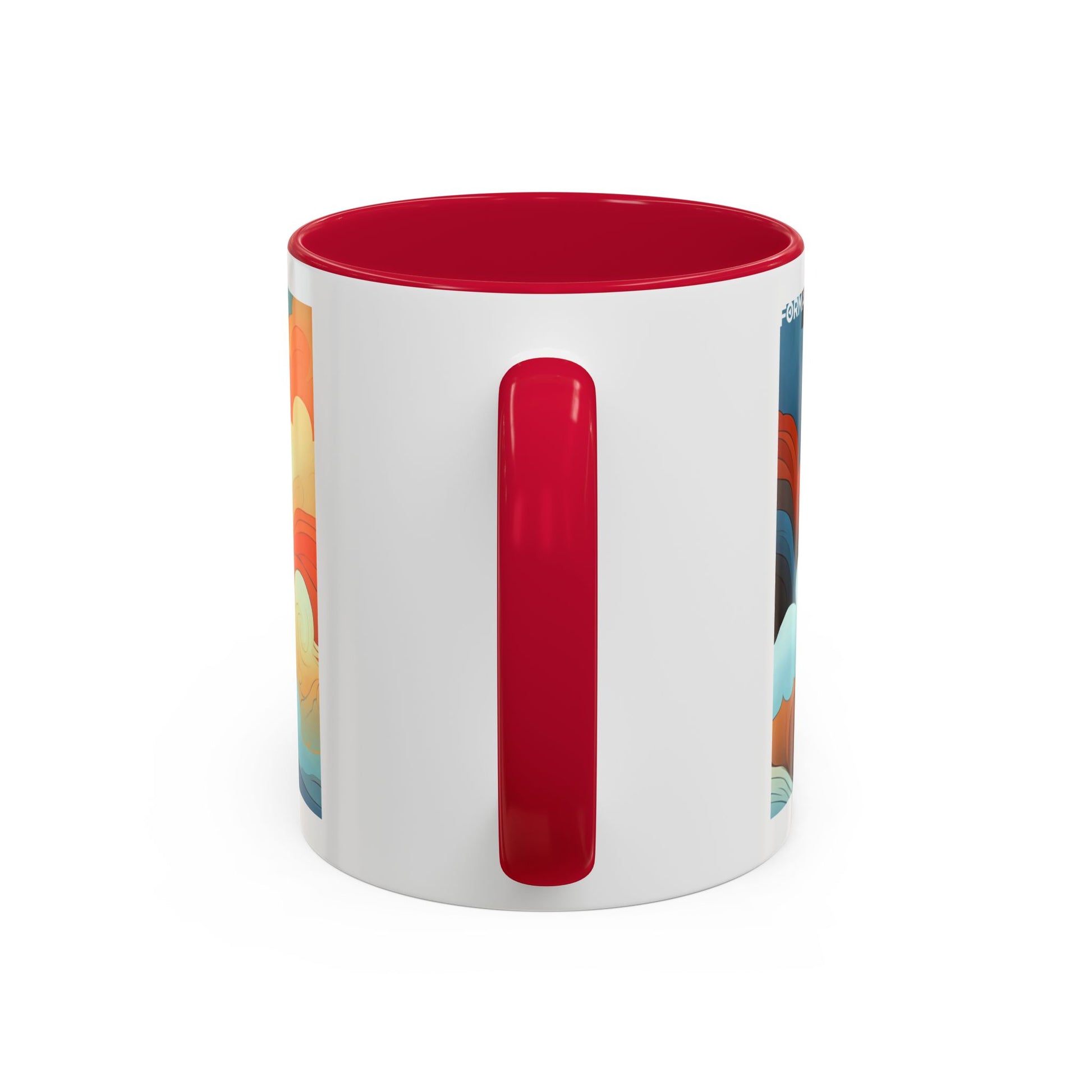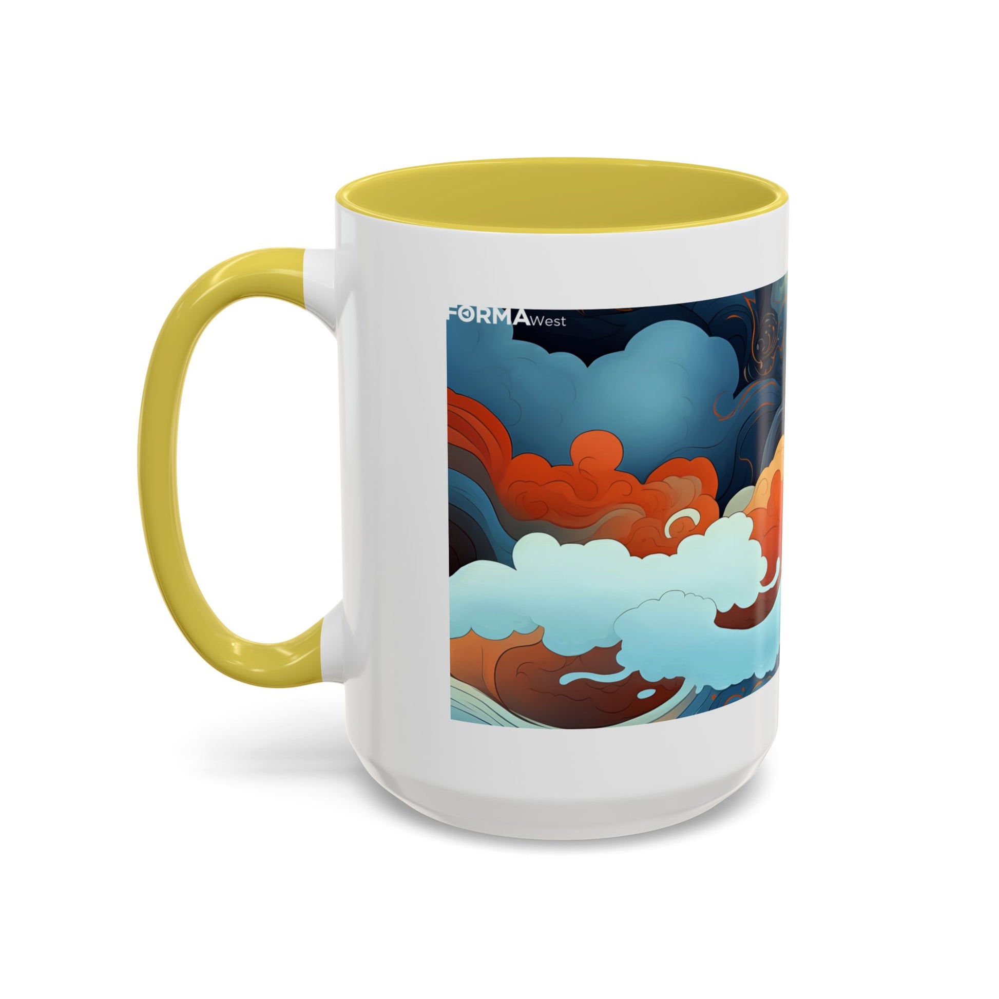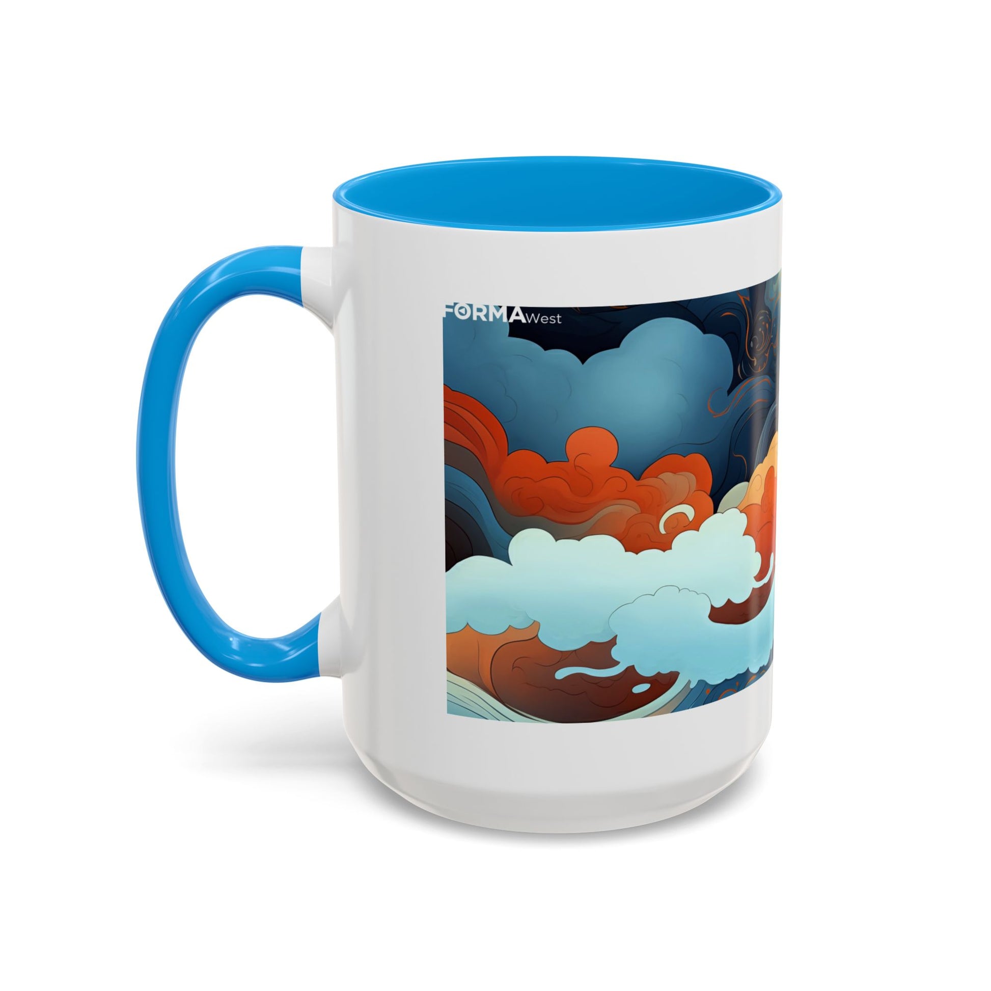Sip color and calm in equal measure. This glossy ceramic mug wraps a sweeping, painterly seascape around its curve — warm coral clouds rolling into teal waves with layered brush-like strokes. The interior and C-handle come in a contrasting accent color, so each morning feels curated and a little brighter. It’s sturdy enough for daily use, safe in the microwave and dishwasher, and the ORCA coating keeps the artwork vivid through many washes. Use it at your desk, on the porch, or as a cozy companion during slow afternoons with a book.