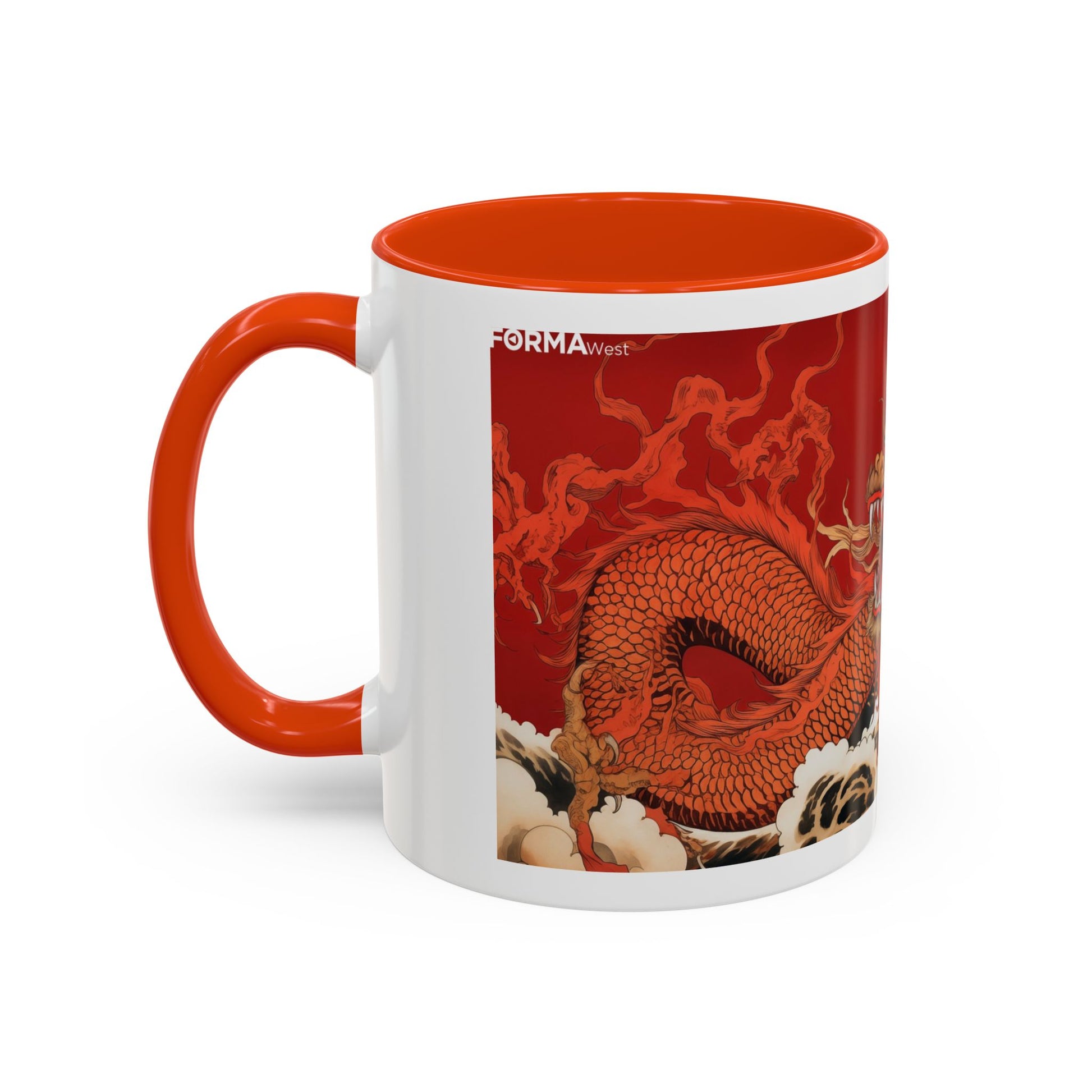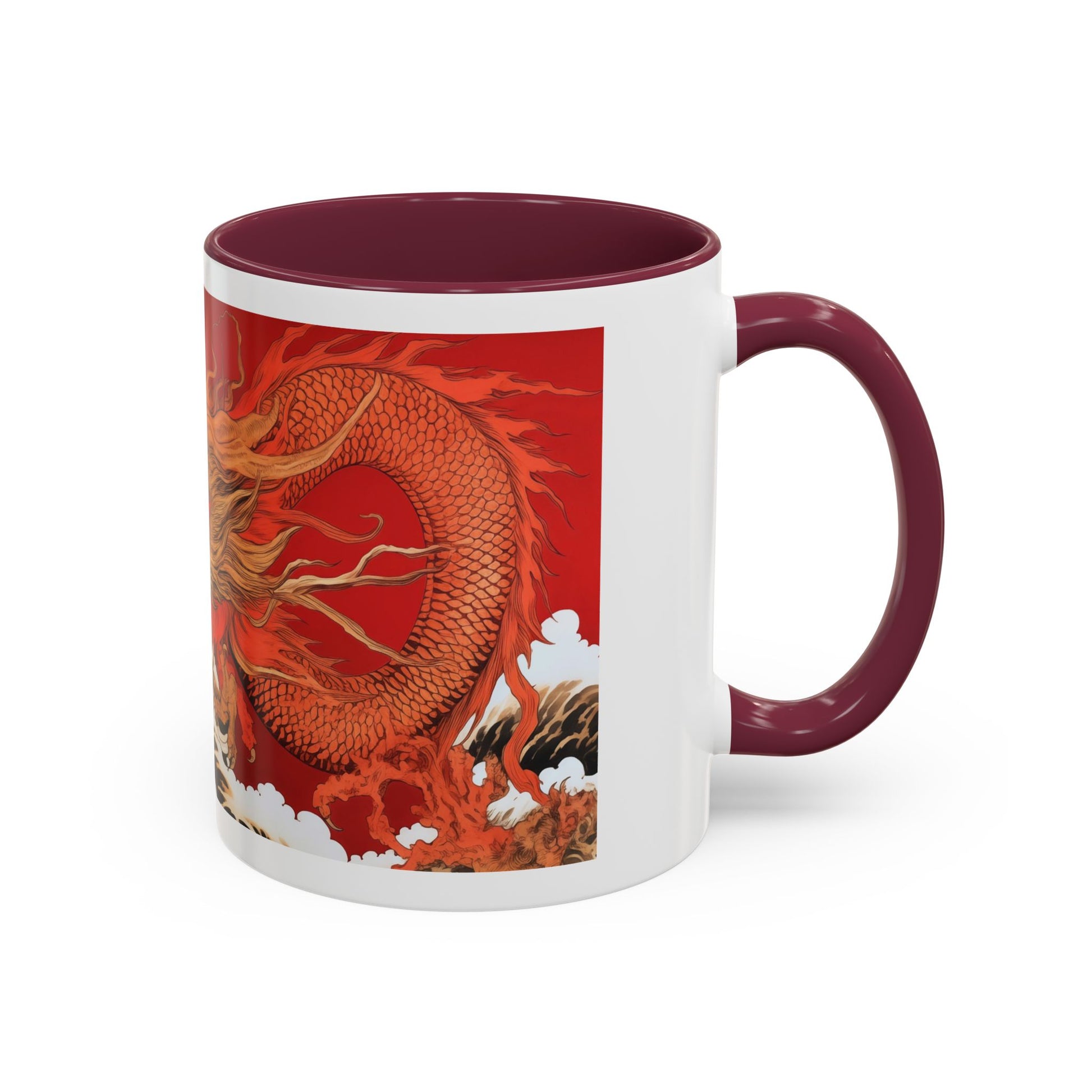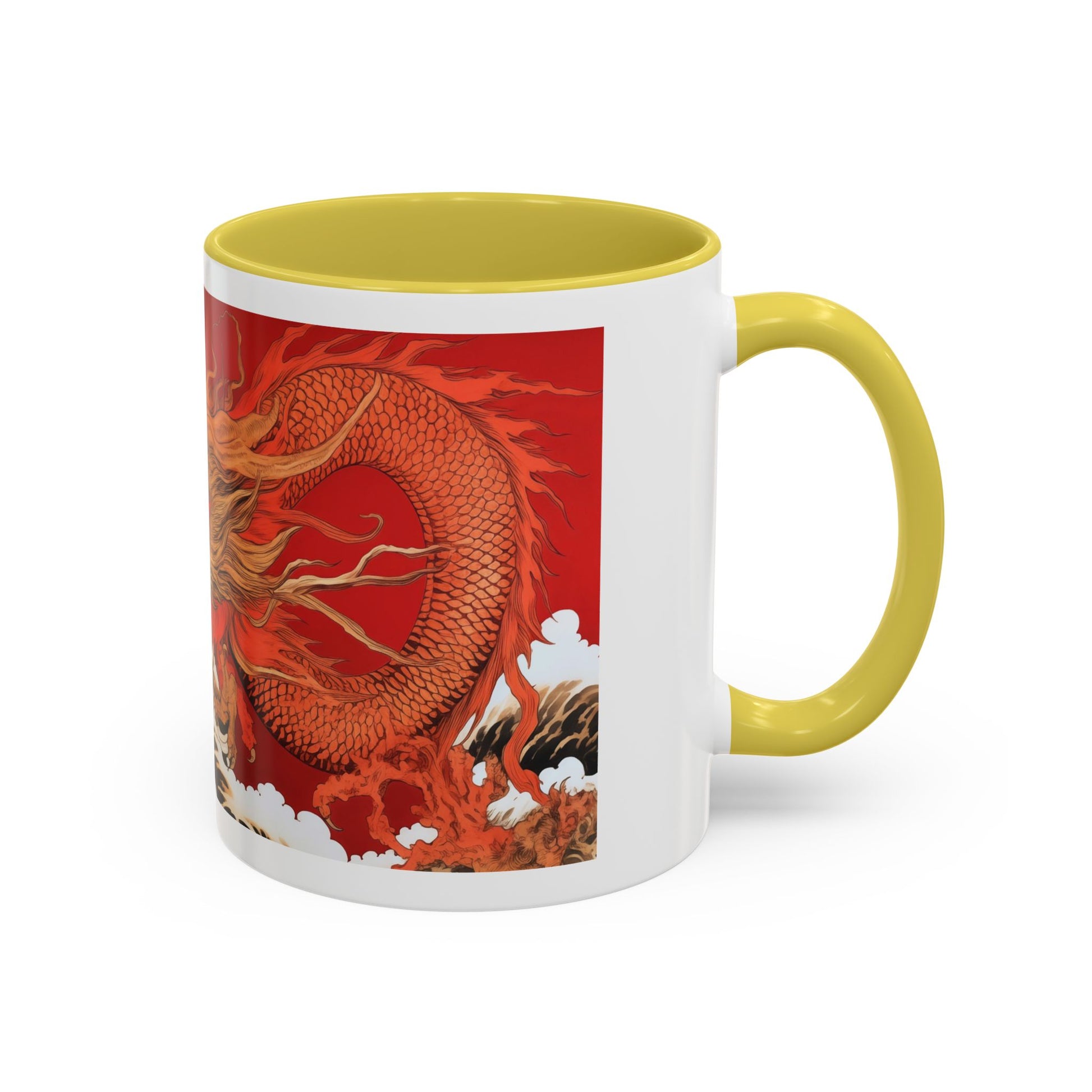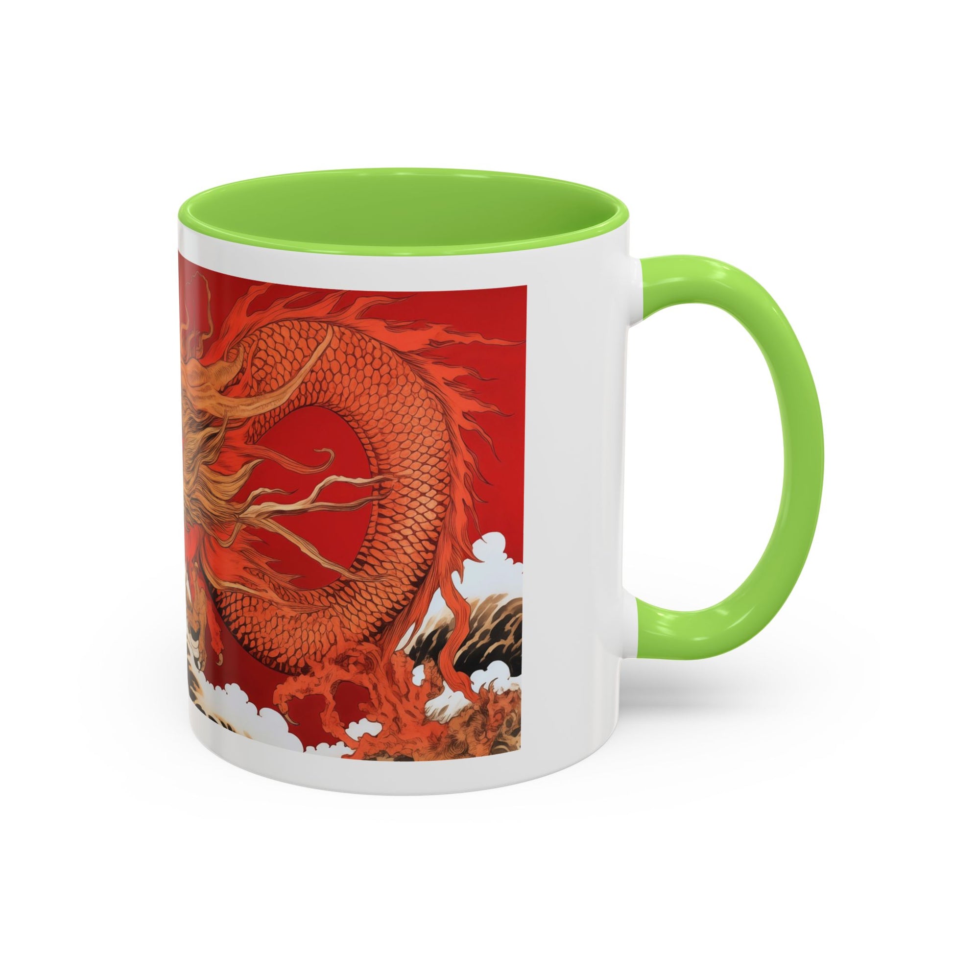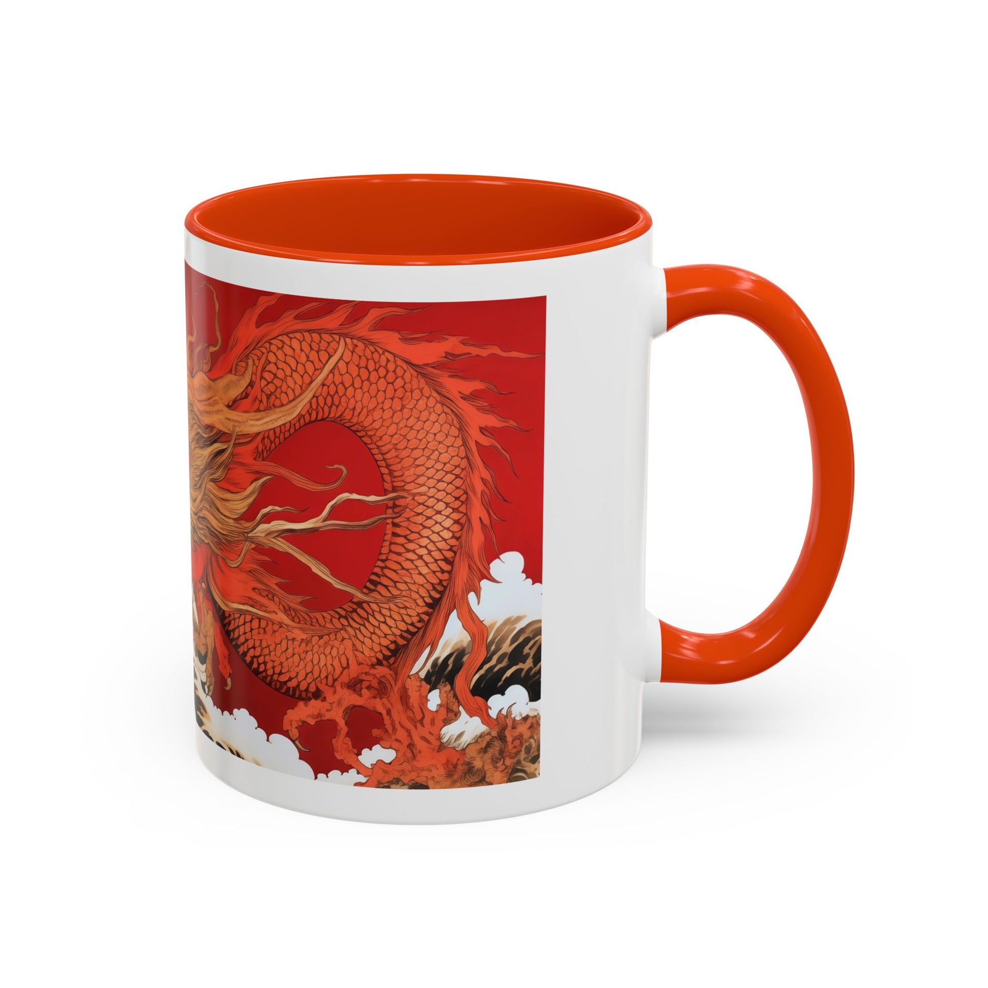 Bright, bold, and full of motion — this ceramic mug brings a fierce dragon illustration to morning coffee and late-night tea alike. The vivid red background and intricate golden scales feel alive against the glossy ceramic, while the colored interior and handle add a pop that ties the artwork into everyday use. Hold it in your hand and you’ll feel the energy: a warming, focused sip that suits creative mornings, tense study sessions, or quiet moments of reflection. It sits comfortably on a desk, shelf, or beside a sketchbook and becomes part of the room’s character rather than just a vessel. The ORCA coating keeps colors sharp through regular use, and the easy-grip C-handle makes every reach effortless. Choose the size and accent color that matches your mood — from bold black to bright teal — and let the mug carry a little myth and fire into your daily routine.