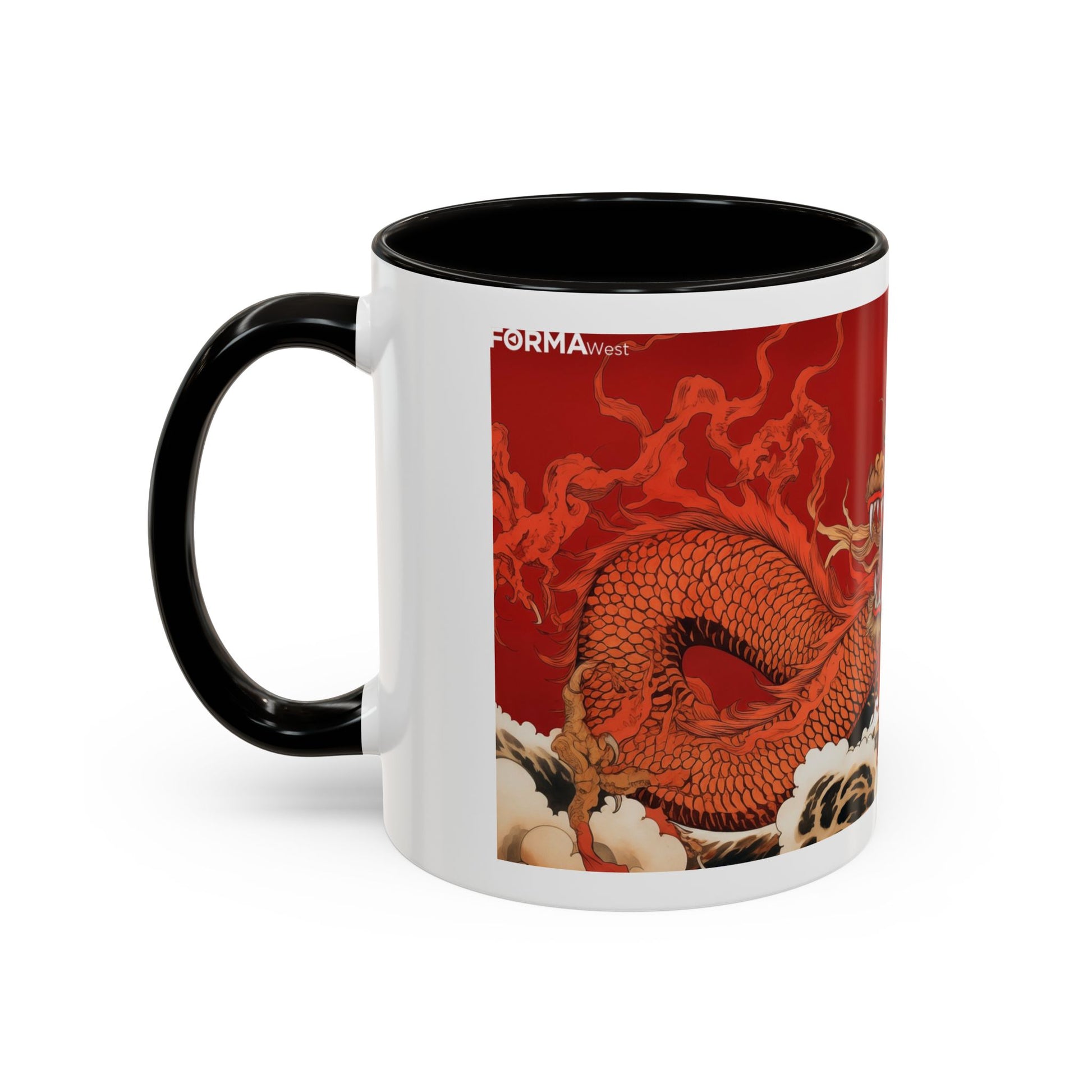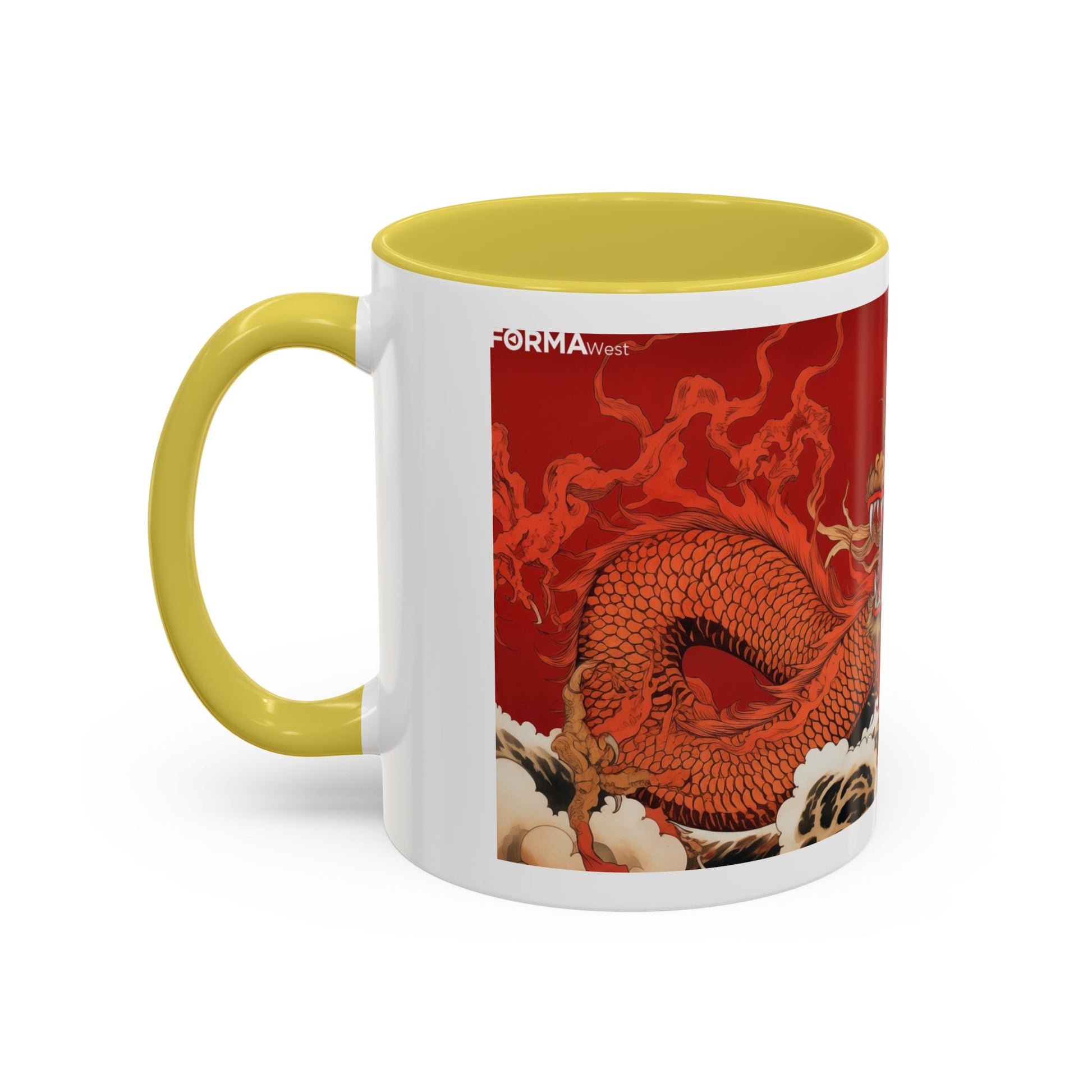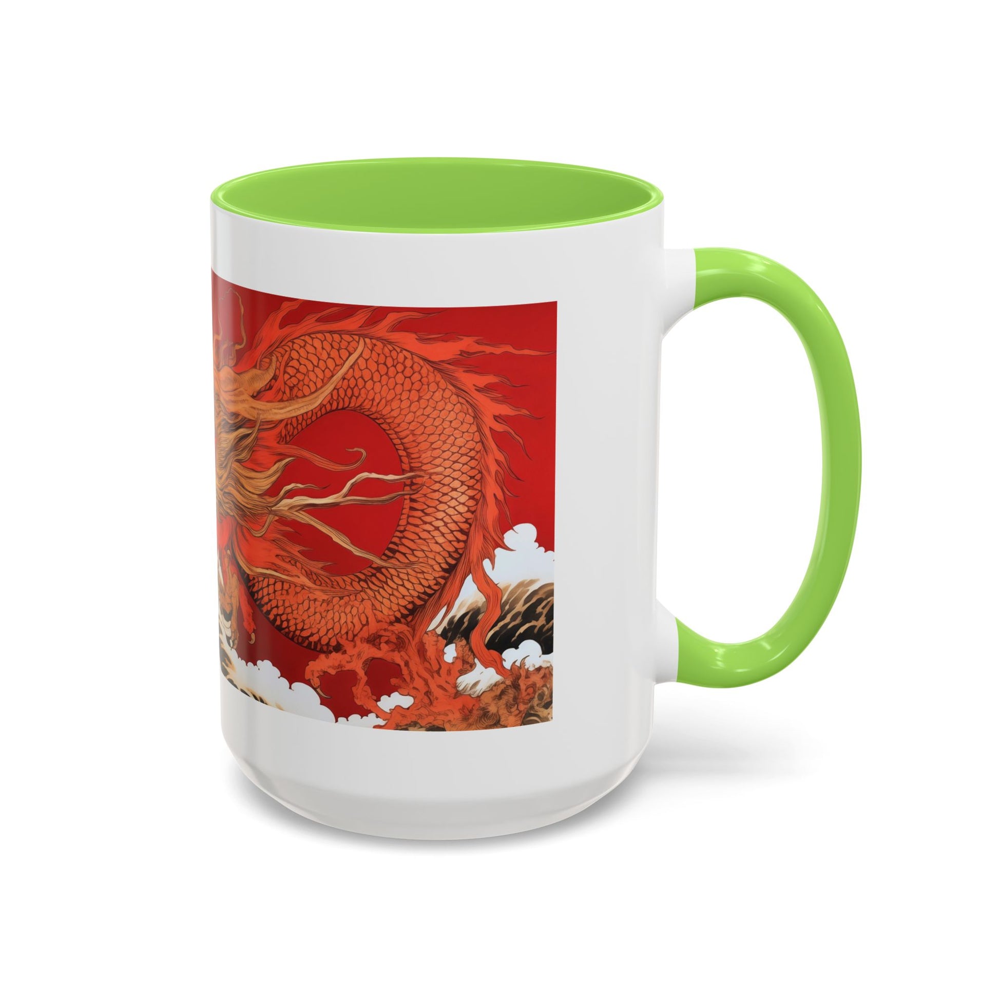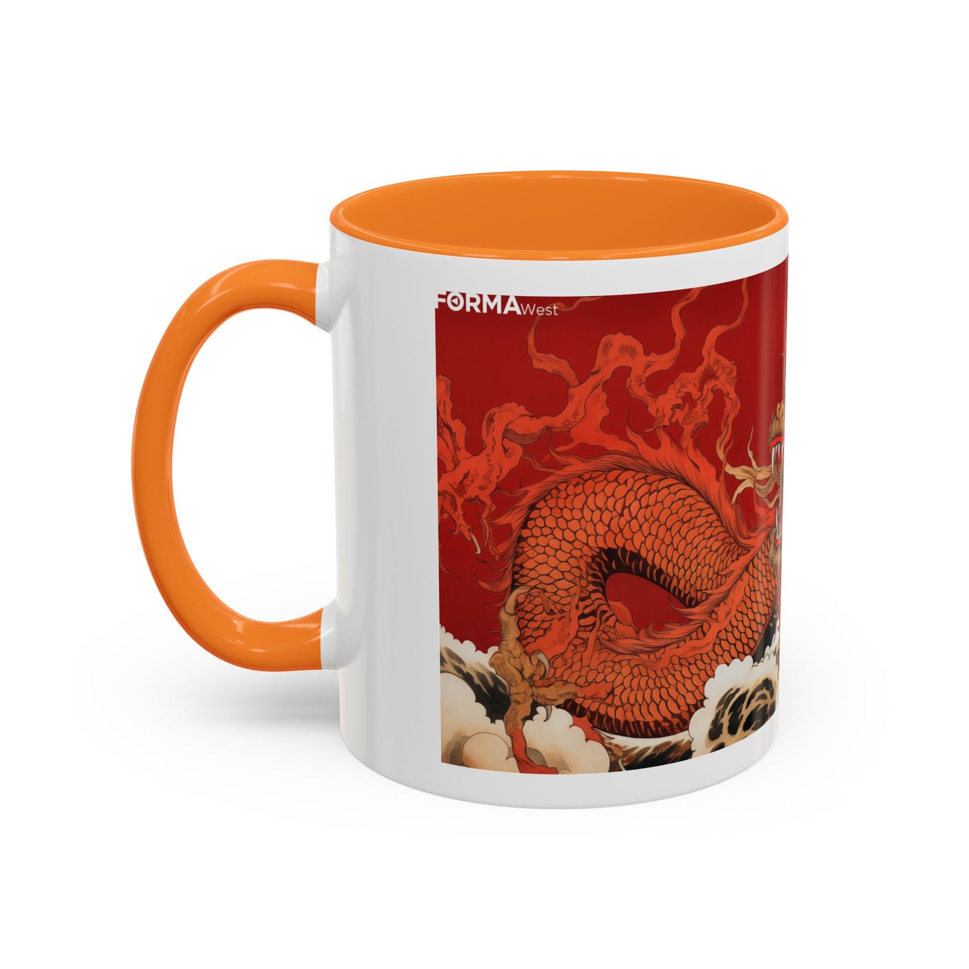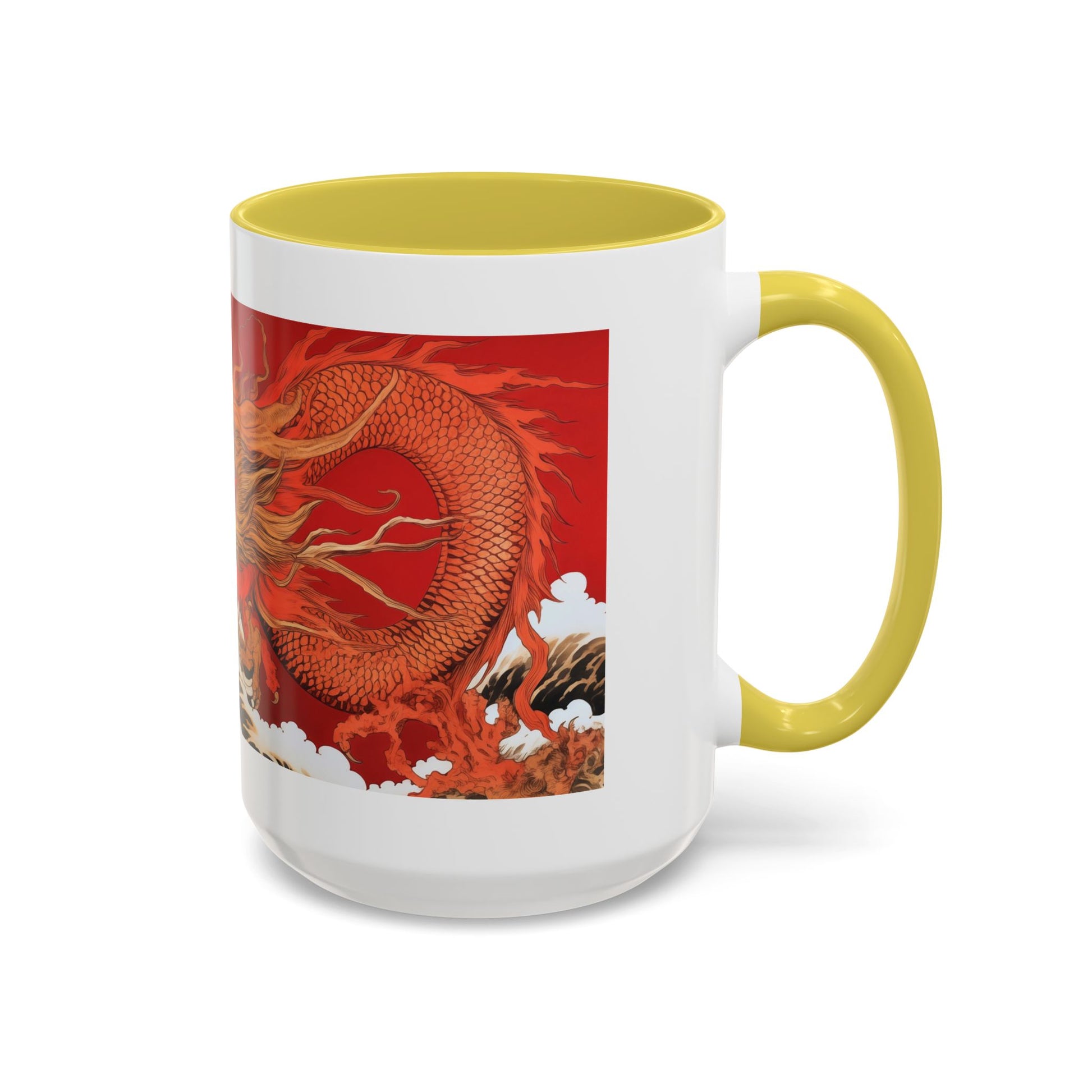 Bright, bold, and full of motion — this ceramic mug brings a fierce dragon illustration to morning coffee and late-night tea alike. The vivid red background and intricate golden scales feel alive against the glossy ceramic, while the colored interior and handle add a pop that ties the artwork into everyday use. Hold it in your hand and you’ll feel the energy: a warming, focused sip that suits creative mornings, tense study sessions, or quiet moments of reflection. It sits comfortably on a desk, shelf, or beside a sketchbook and becomes part of the room’s character rather than just a vessel. The ORCA coating keeps colors sharp through regular use, and the easy-grip C-handle makes every reach effortless. Choose the size and accent color that matches your mood — from bold black to bright teal — and let the mug carry a little myth and fire into your daily routine.