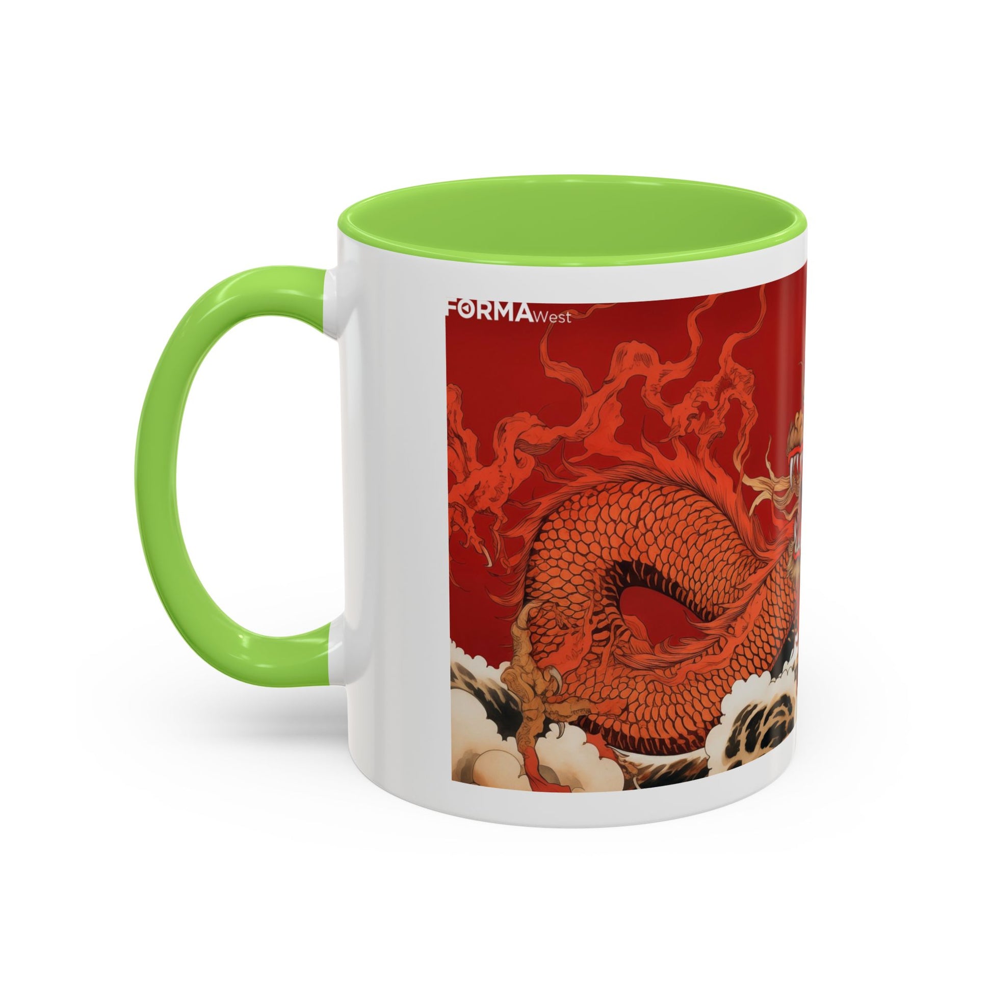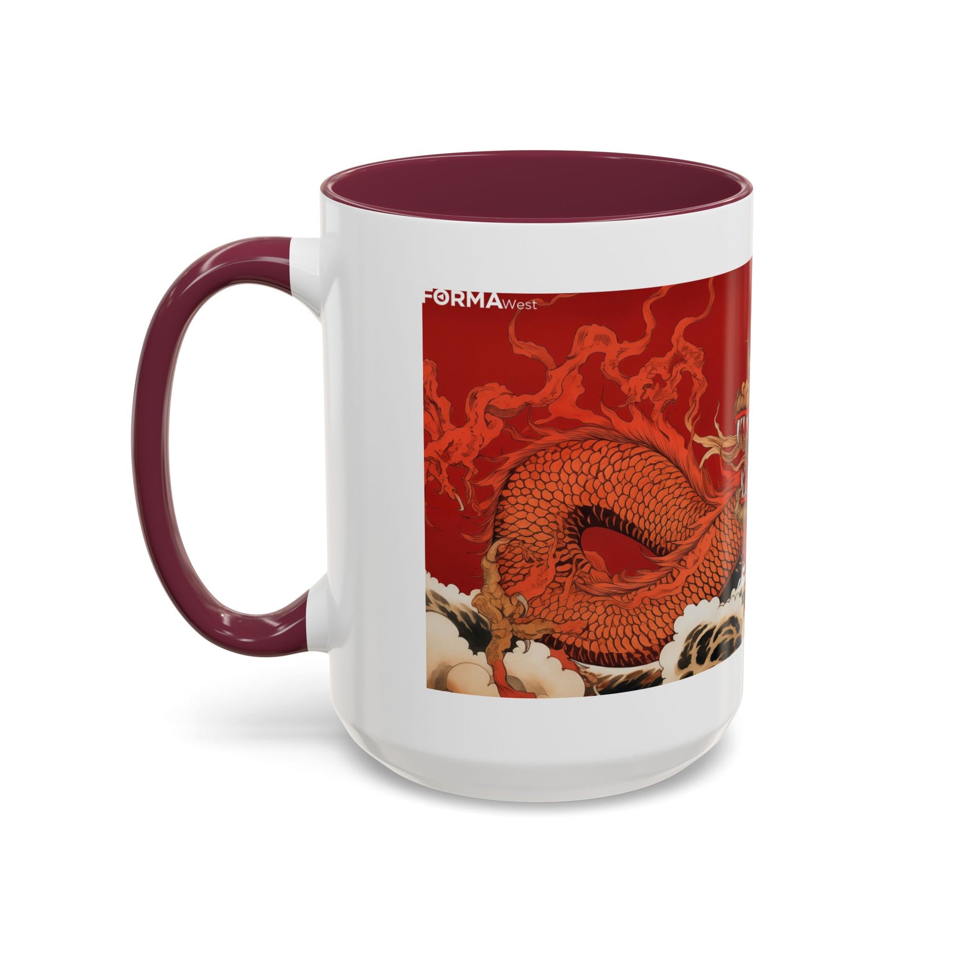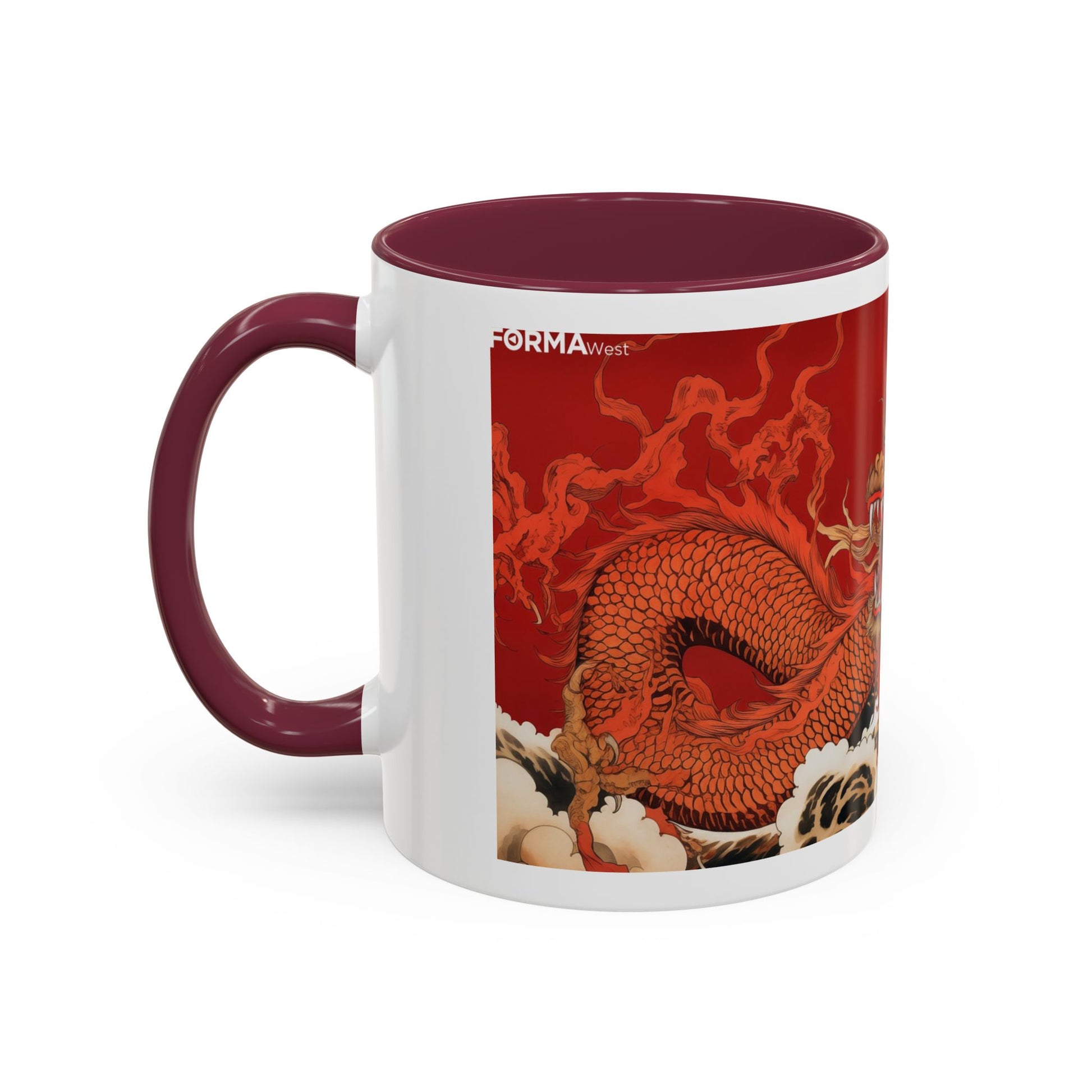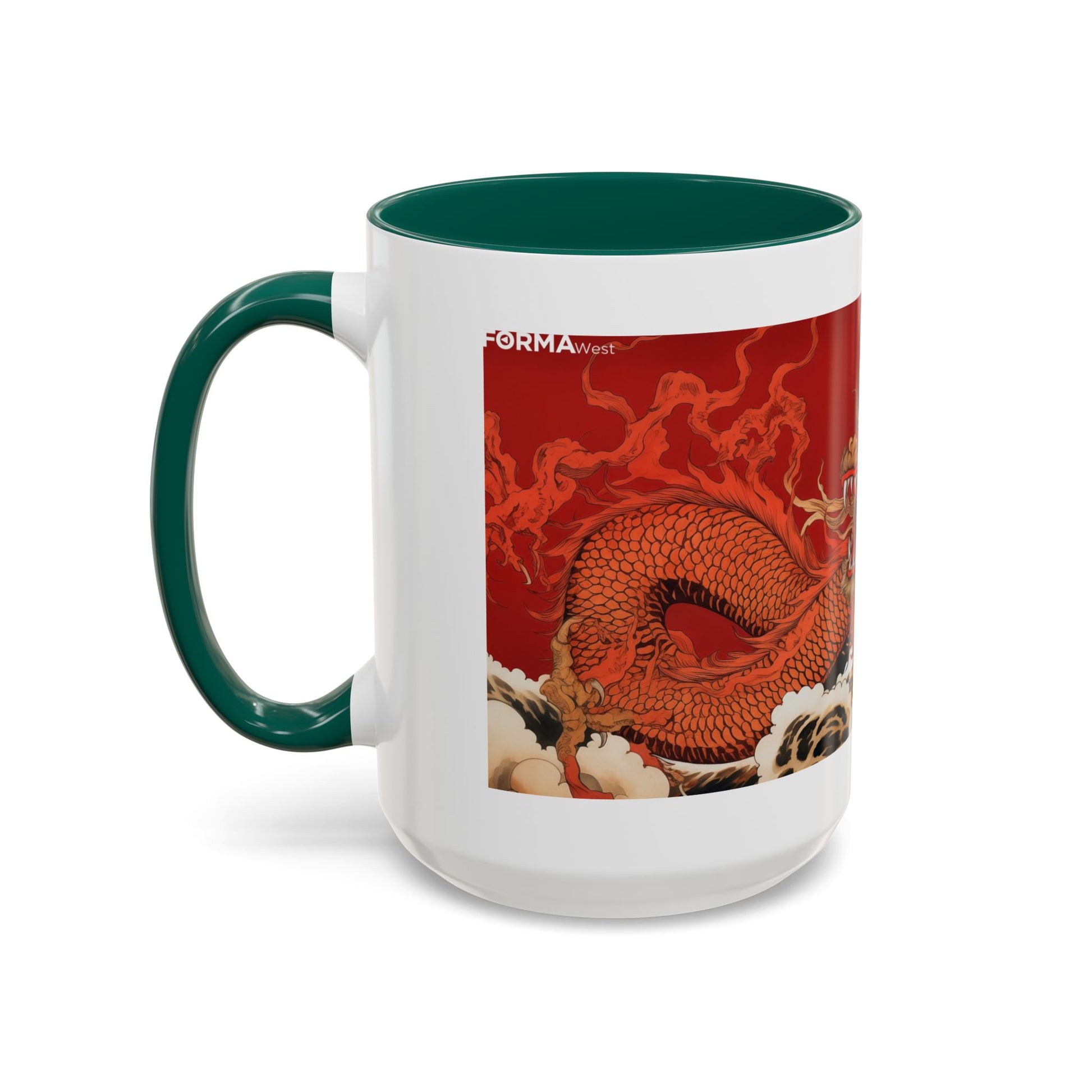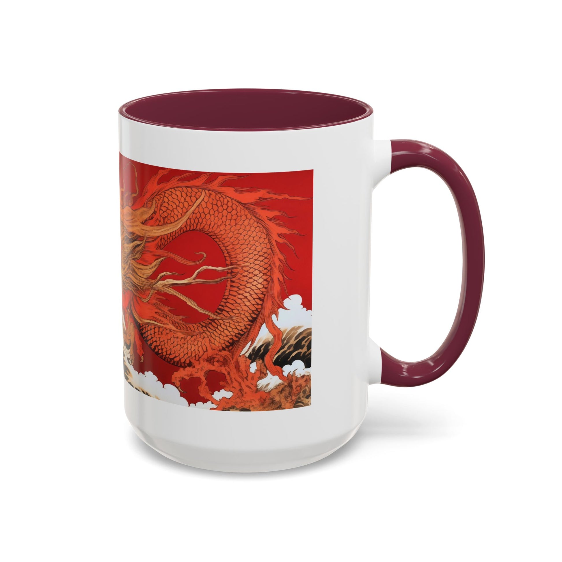 Bright, bold, and full of motion — this ceramic mug brings a fierce dragon illustration to morning coffee and late-night tea alike. The vivid red background and intricate golden scales feel alive against the glossy ceramic, while the colored interior and handle add a pop that ties the artwork into everyday use. Hold it in your hand and you’ll feel the energy: a warming, focused sip that suits creative mornings, tense study sessions, or quiet moments of reflection. It sits comfortably on a desk, shelf, or beside a sketchbook and becomes part of the room’s character rather than just a vessel. The ORCA coating keeps colors sharp through regular use, and the easy-grip C-handle makes every reach effortless. Choose the size and accent color that matches your mood — from bold black to bright teal — and let the mug carry a little myth and fire into your daily routine.