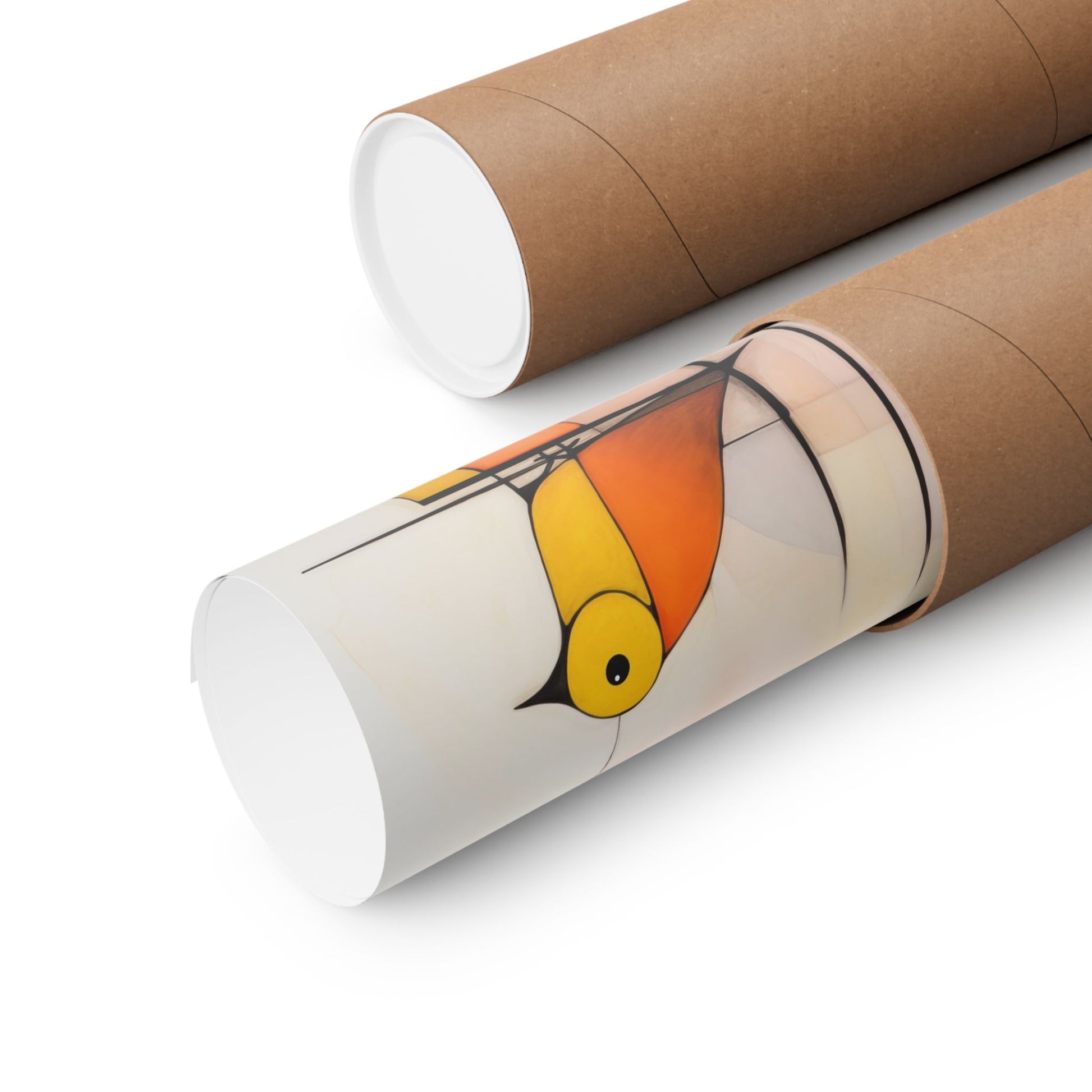 This series of vibrantly colored birds, each rendered with simplified geometric forms and bold outlines, employs a flattened perspective and a playful arrangement of shapes and hues to create a visually engaging exploration of avian subjects through a distinctly modern and decorative lens. The interaction between the organic forms of the birds and the abstract geometric framework generates a playful dynamic tension.
