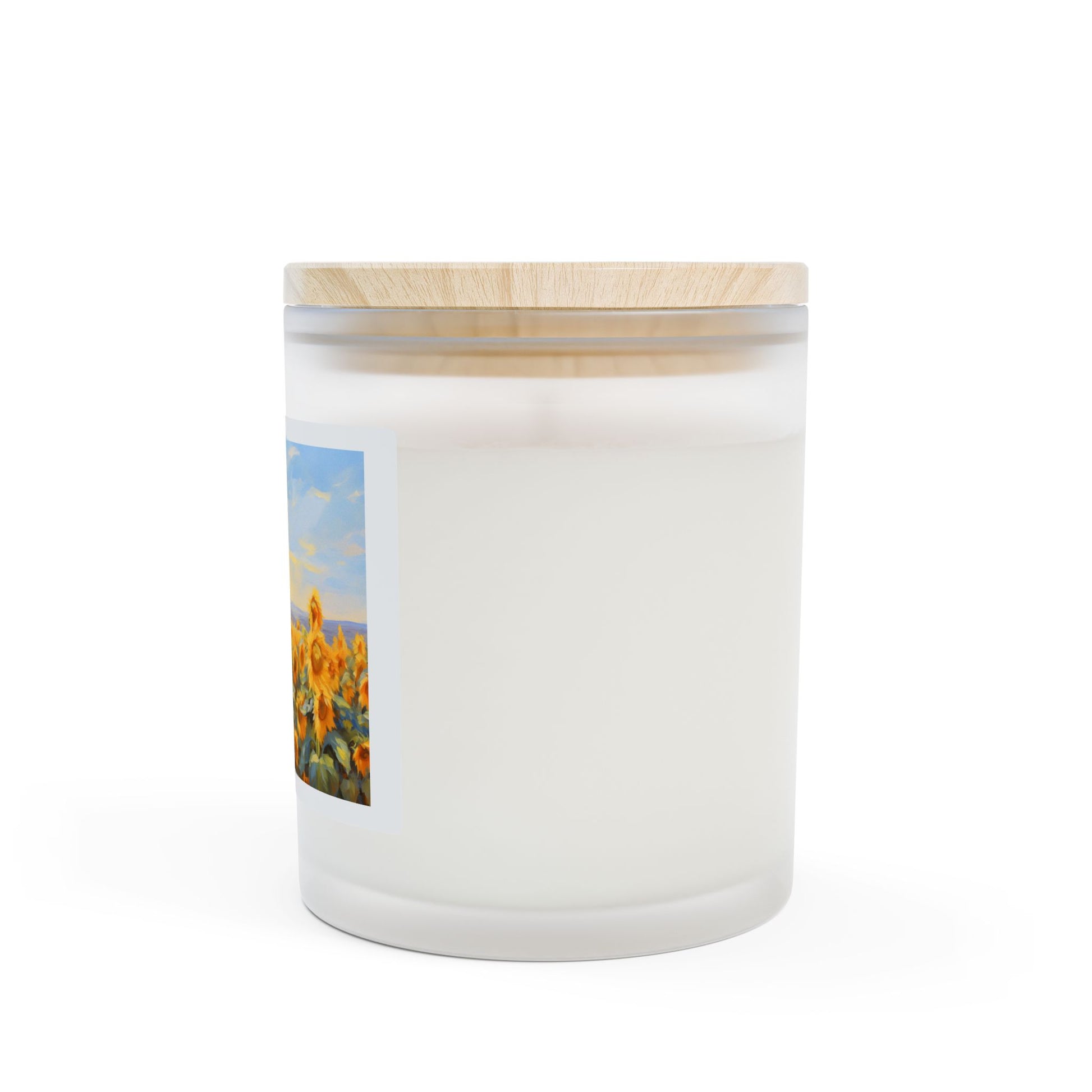 Warm sunlight poured through fields of tall sunflowers. This frosted glass candle brings that quiet summer afternoon into your home — gentle, textured wax, a soft wooden wick crackle, and a raw maple lid that feels like a terrace table at dusk. Light it while reading on the porch or when you want a room to feel lived-in and luminous. The scent options let you tailor the mood: bright and green, or cozy and honeyed. Each candle is hand-poured in the USA and made from a coconut-soy blend that burns clean and long, so the memory of that golden hour lingers.