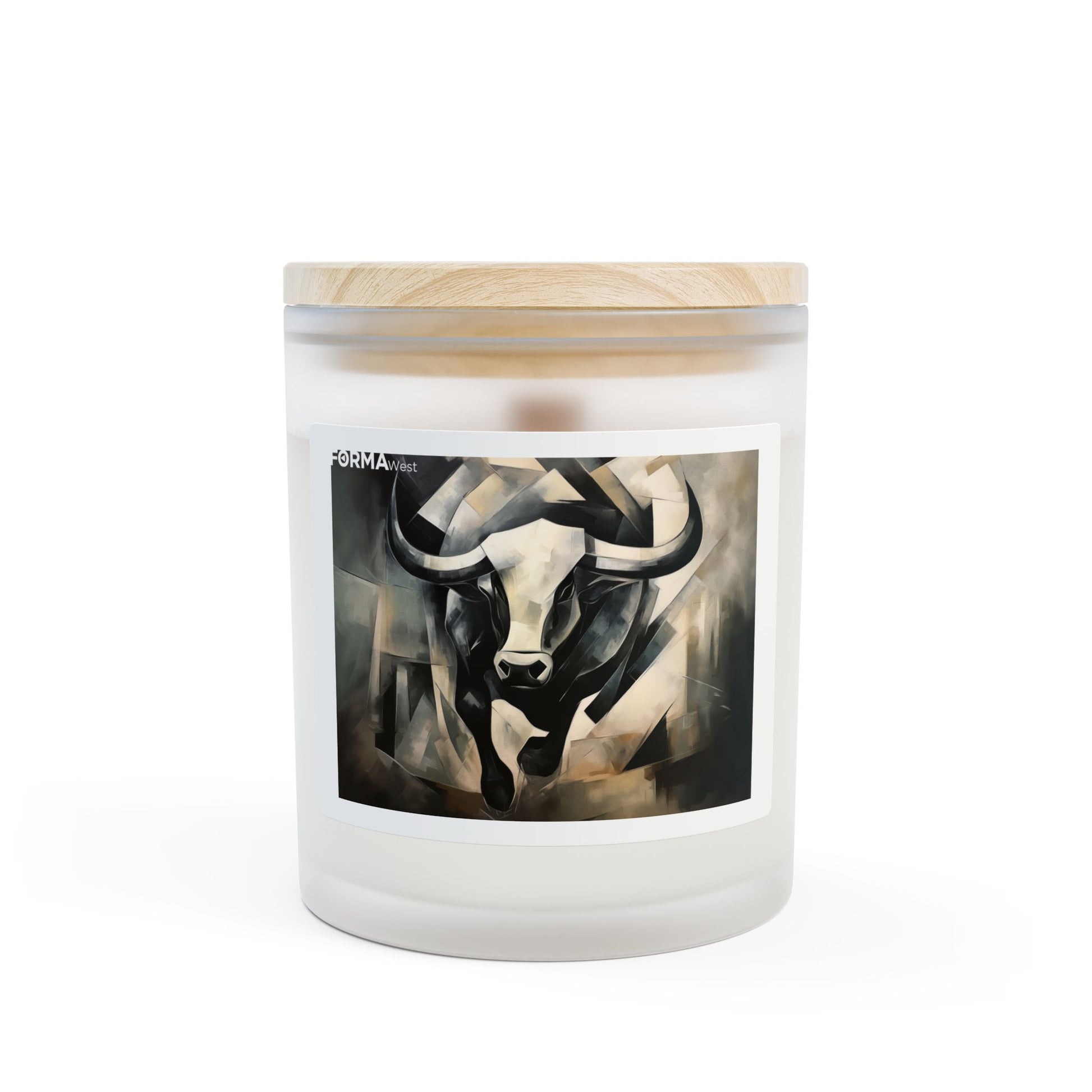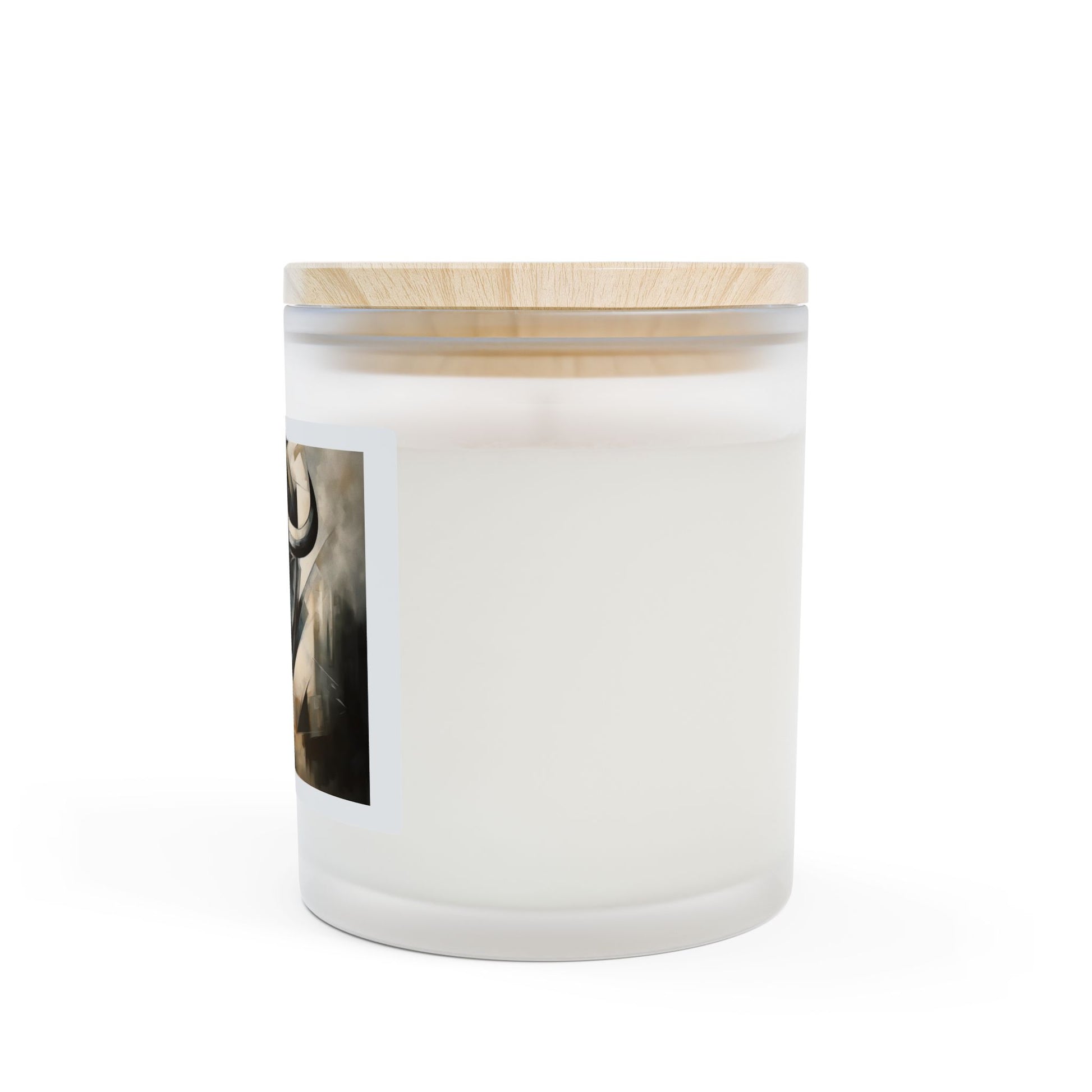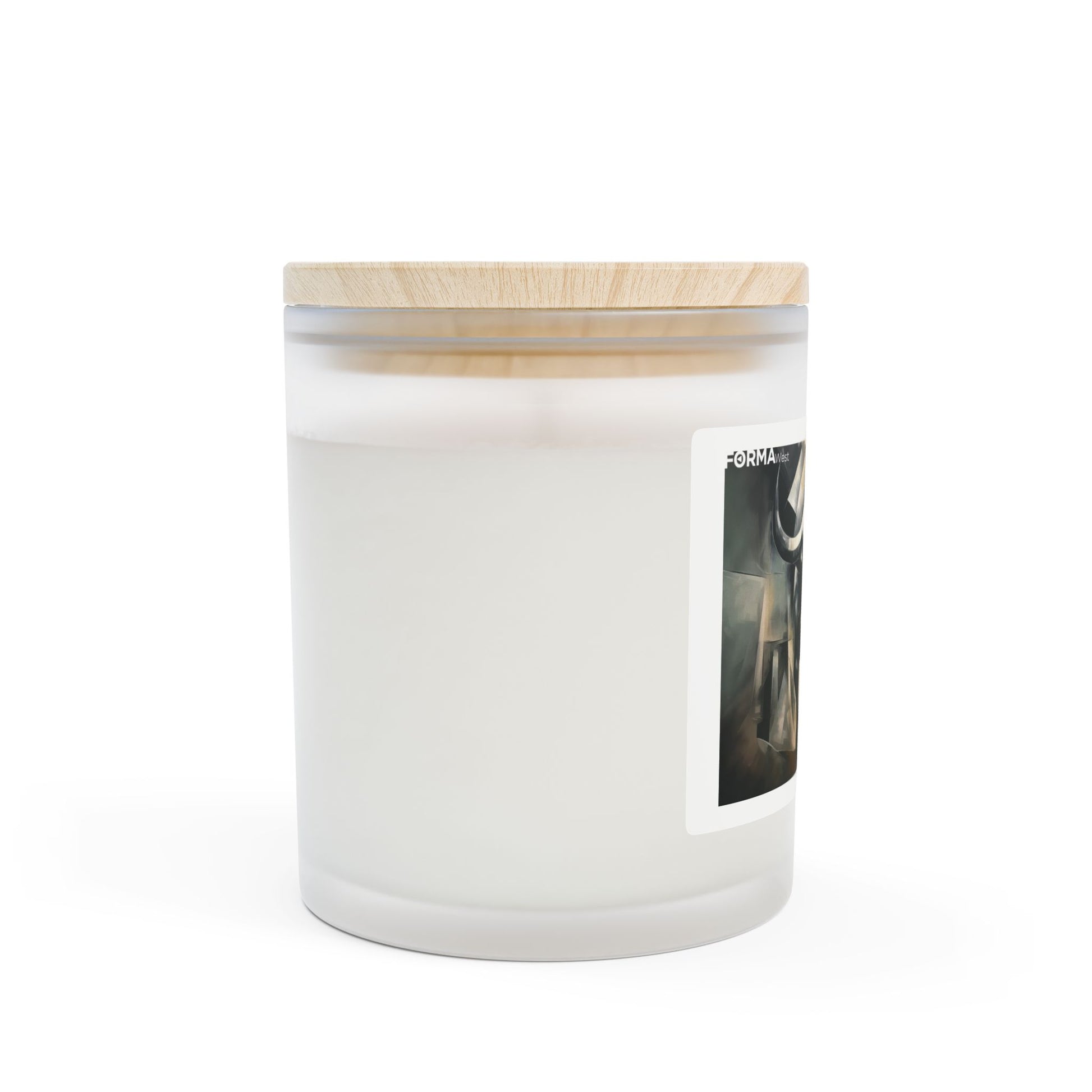 - 11 oz frosted glass vessel with raw maple lid — elegant, gallery-ready presentation