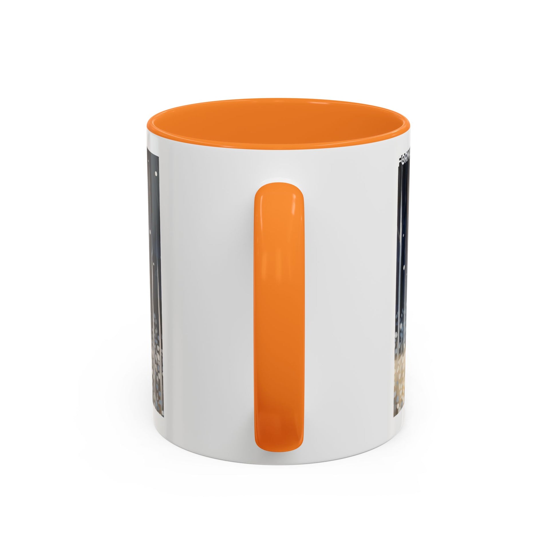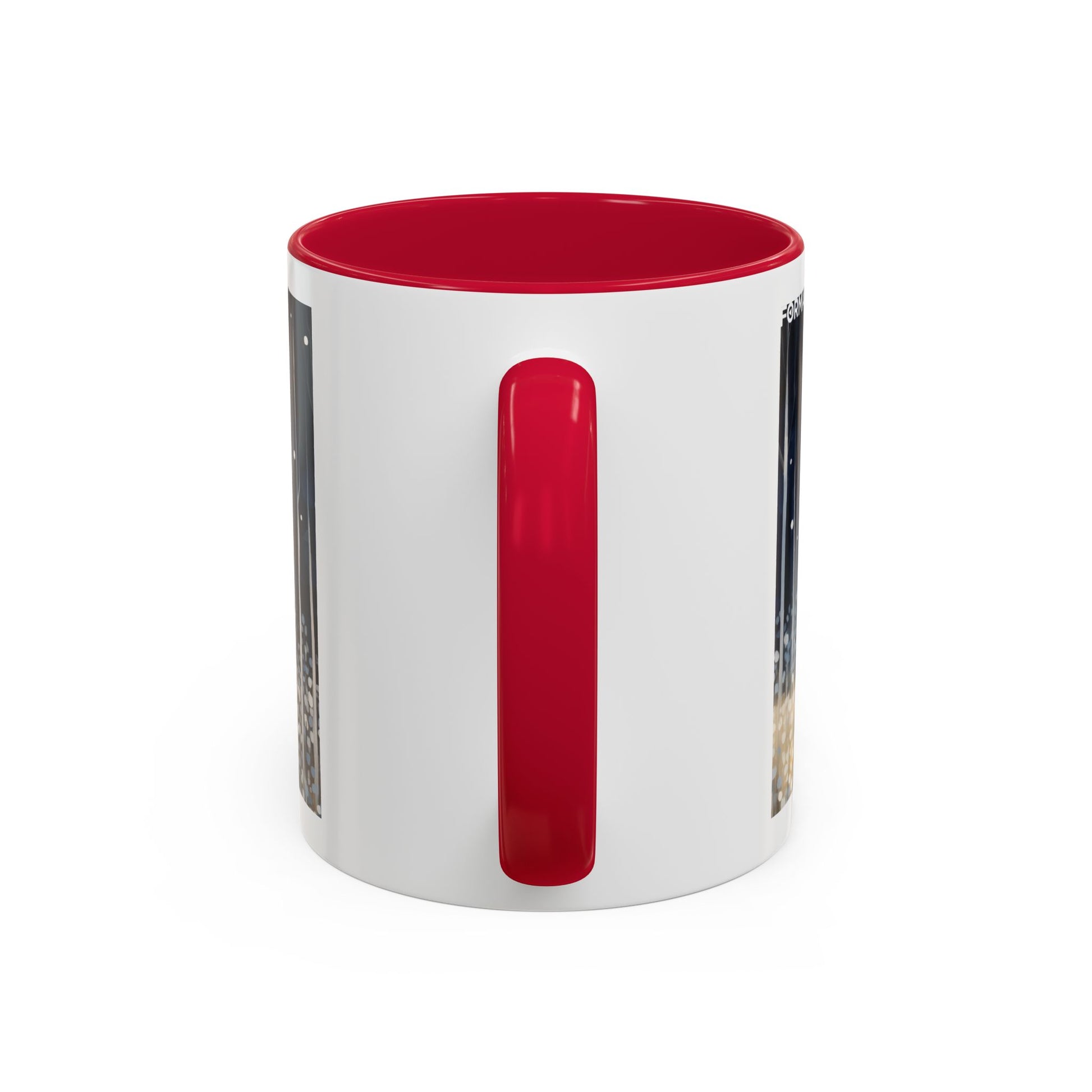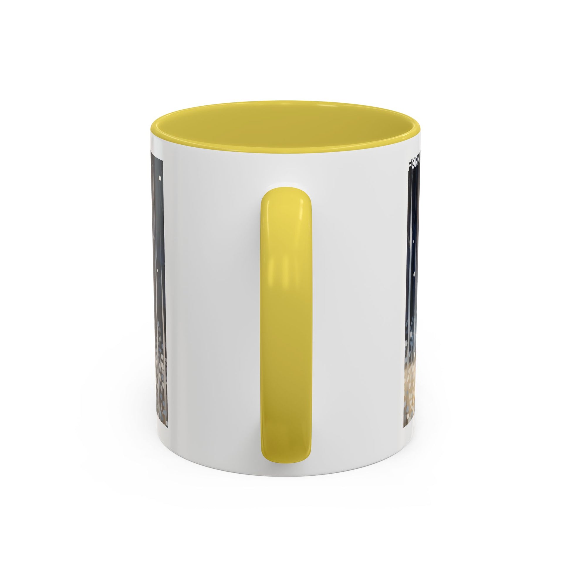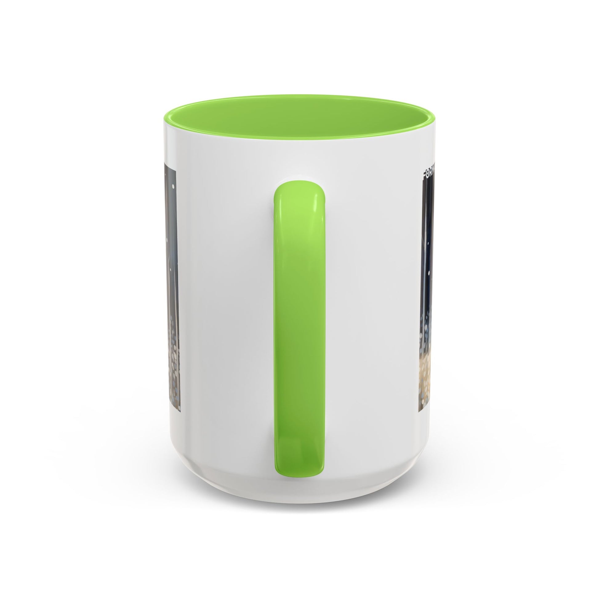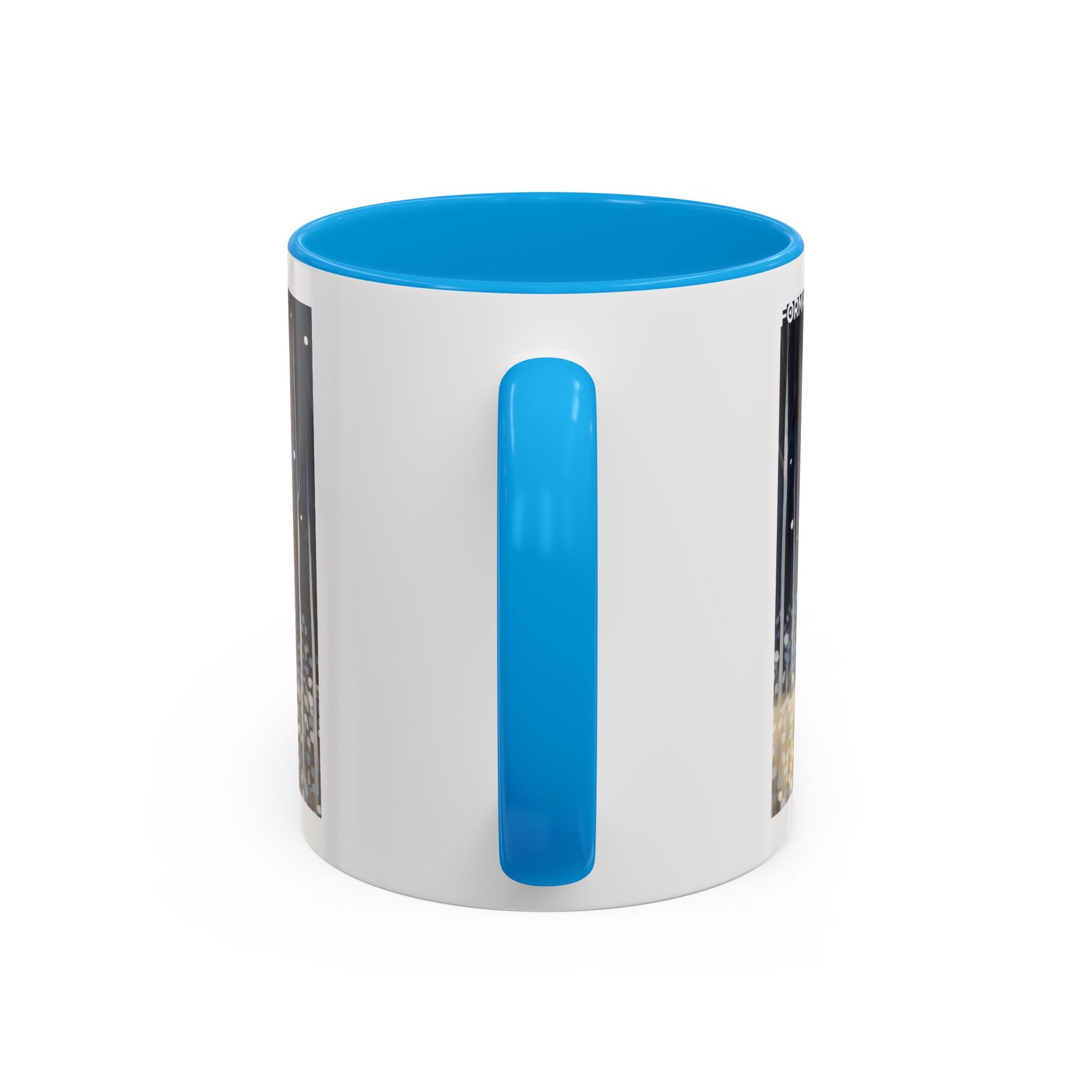 This glossy ceramic mug brings a quiet, starry forest to your mornings. Deep indigo blues melt into soft, misty light above a field of fine, shimmering flecks that read like falling snow or fireflies. Thin, pale trunks stand like sentinels across the scene, giving the design a calm, contemplative rhythm. The colored handle and interior add a subtle pop that ties into your kitchen or workspace. Reach for this mug when you want a slow, thoughtful moment with your coffee or tea — the kind of cup that feels like a pause in a busy day.